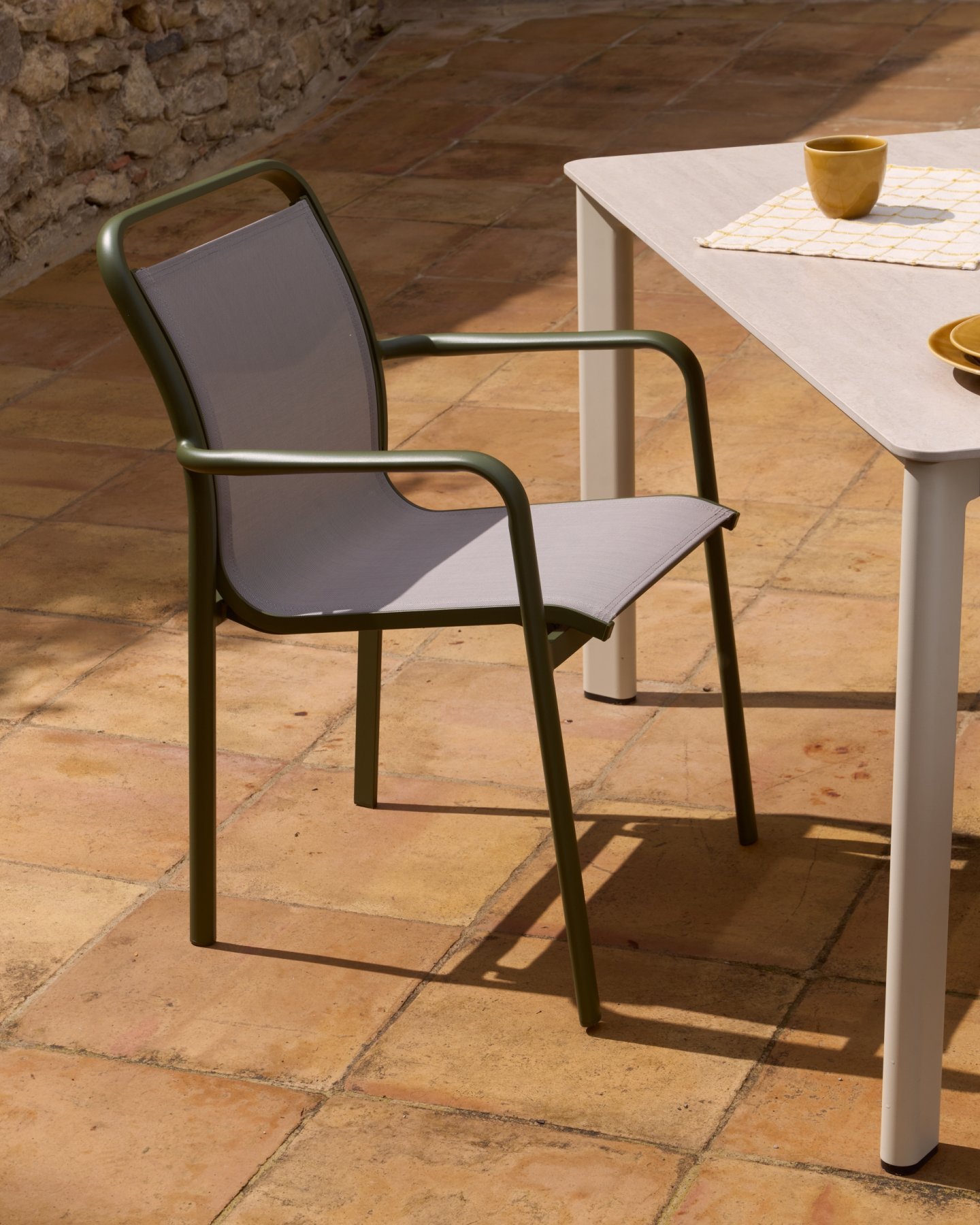 Стул Luri сочетает в себе комфорт и прочность благодаря алюминиевой конструкции. Этот легкий и прочный материал устойчив к ржавчине, коррозии и воздействию солнечных лучей. Сиденье и спинка изготовлены из текстелина — дышащей синтетической ткани, которая сохраняет свою форму и текстуру после длительного использования. Штабелируемая конструкция позволяет легко хранить стул, когда он не используется. Ножки оснащены пластиковыми защитными накладками, которые помогают защитить пол и сохранить поверхности в хорошем состоянии.
