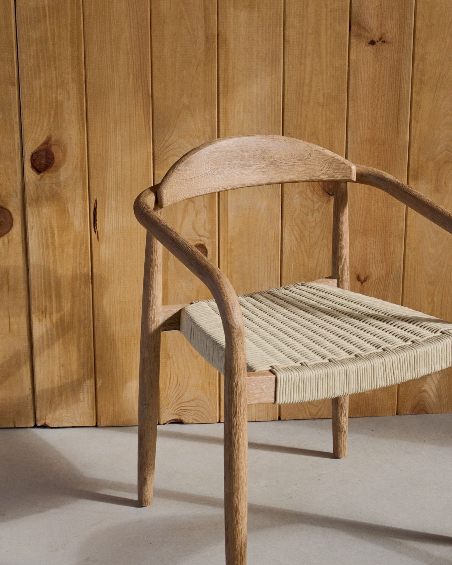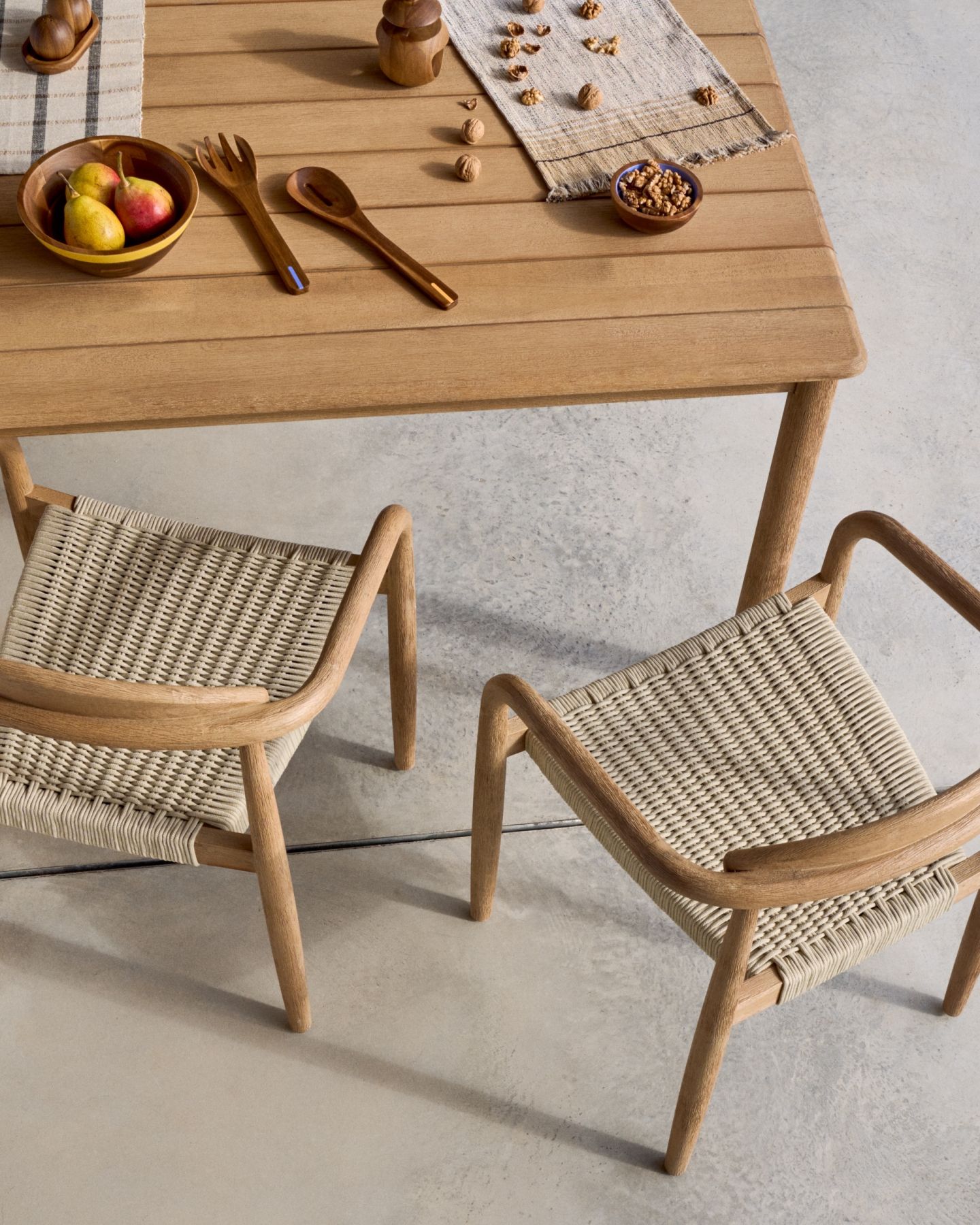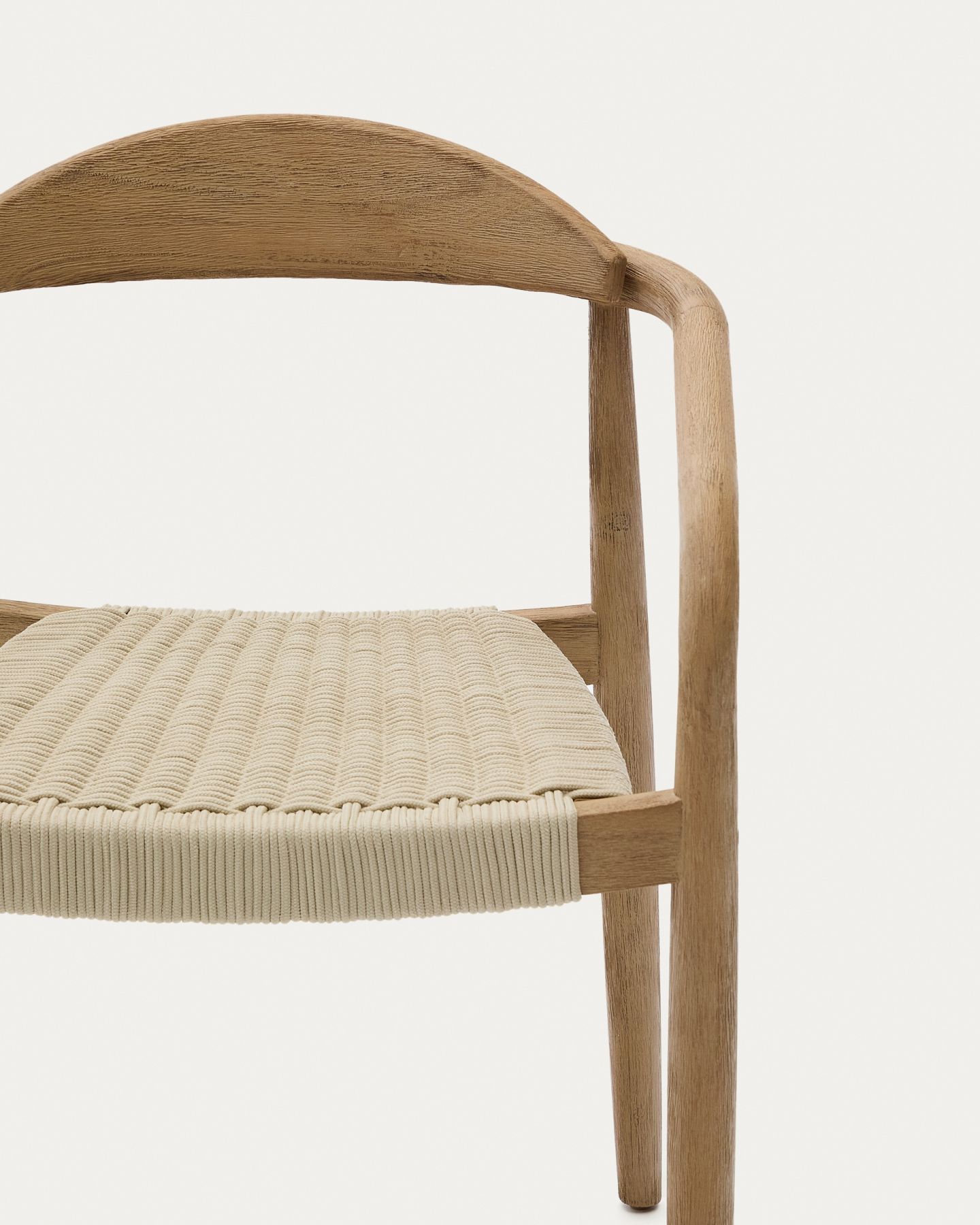 В рустикальных текстурах коллекции Nina вы сможете оценить уникальные особенности высококачественных материалов. Эта коллекция изготовлена из массива акации с матовой отделкой, созданной с использованием традиционных технологий. Благодаря этому каждое изделие может похвастаться своими уникальными оттенками и прожилками. Сиденье из веревочного шнура сплетено вручную и устойчиво к ультрафиолетовым лучам.