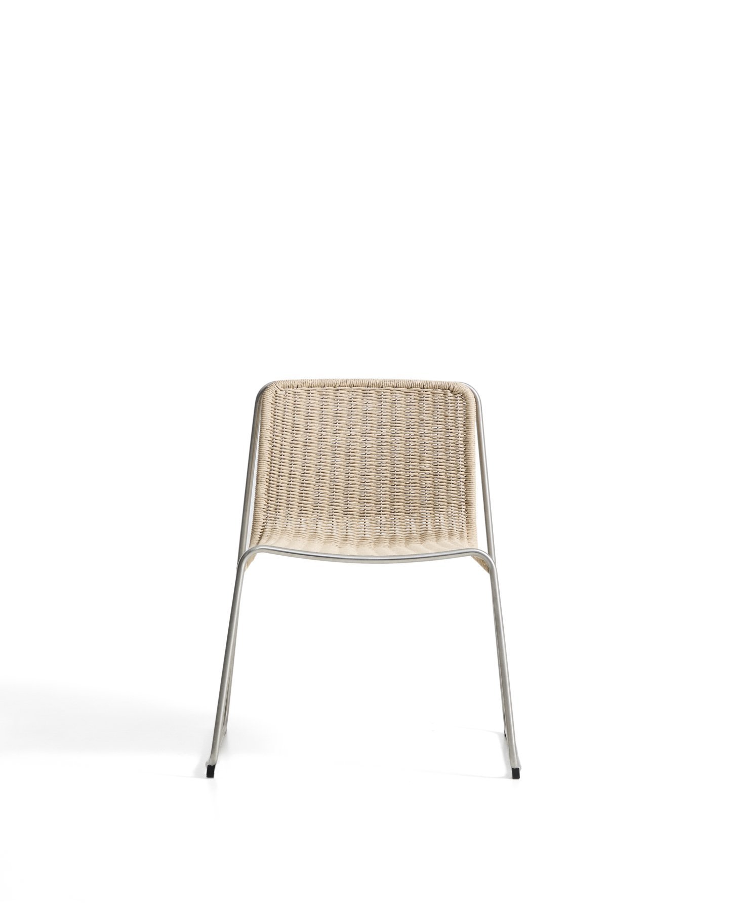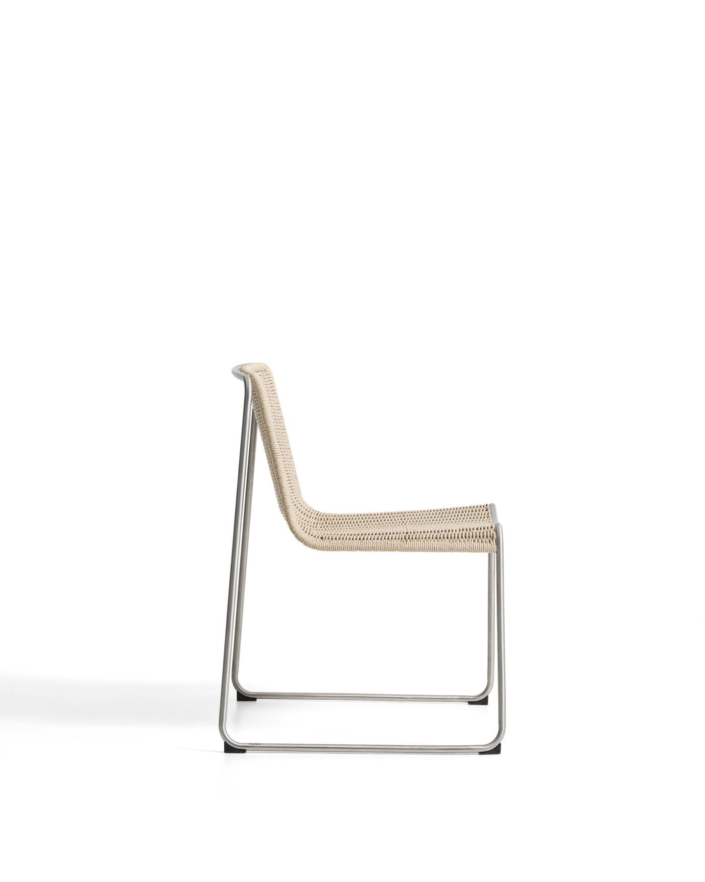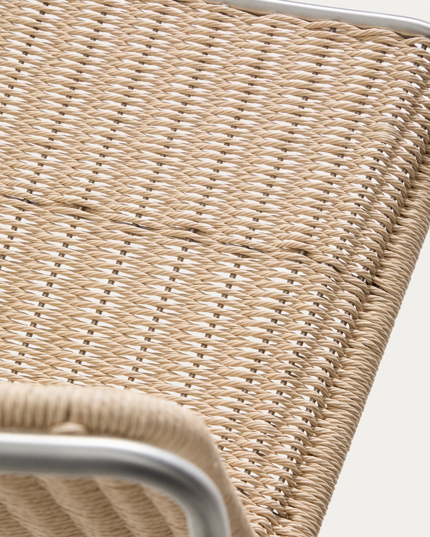 Штабелируемый стул Tavari сочетает в себе легкость и прочность, создавая изделие, предназначенное для отдыха на открытом воздухе круглый год. Его сиденье, сплетенное вручную из бежевого синтетического шнура, добавляет текстуру и комфорт, а конструкция из нержавеющей стали с матовой отделкой обеспечивает стабильность и долговечность. Синтетический шнур выдерживает солнце, дождь и перепады температур, не теряя своей формы и цвета. Он также легко чистится, что делает его практичным выбором для открытых пространств.