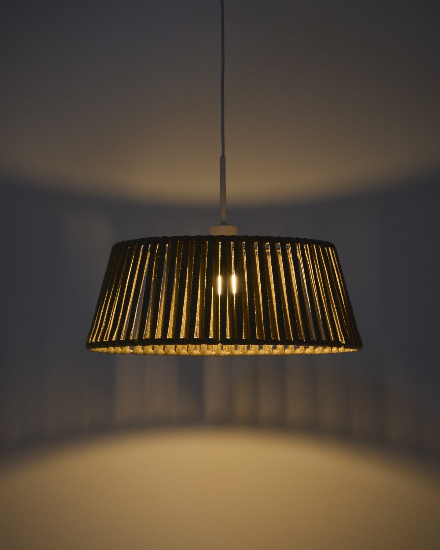 Этот абажур для потолочного светильника выделяется своим плоским шнуром, который придает уникальную текстуру любому открытому пространству. Идеально подходящий для создания теплой и уютной атмосферы, этот абажур сочетает в себе стиль и функциональность, превращая террасы и сады в очаровательные уголки. Он совместим с креплениями для потолочных светильников Fulvia, Kaede и Albir, что делает его универсальным вариантом для разных стилей. Он также доступен в различных цветах, что позволяет подобрать цвет в соответствии с вашими потребностями в оформлении интерьера.