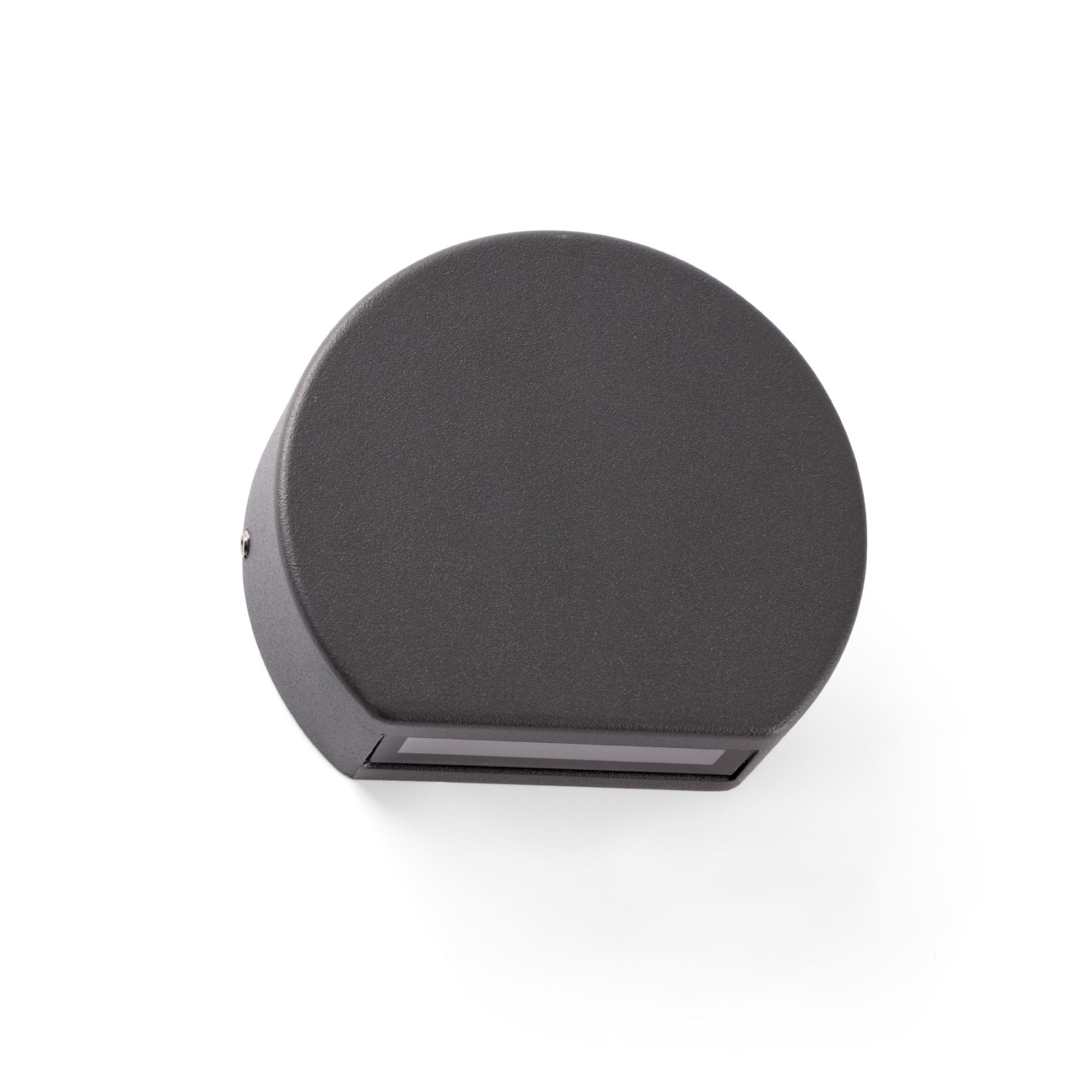 Темно-серый PILL - уличная светодиодная настенная лампа . Его структура компактна, а форма напоминает полукруг. Эта лампа идеально подходит для освещения сада и террас . Может быть установлен с подсветкой вниз или вверх .