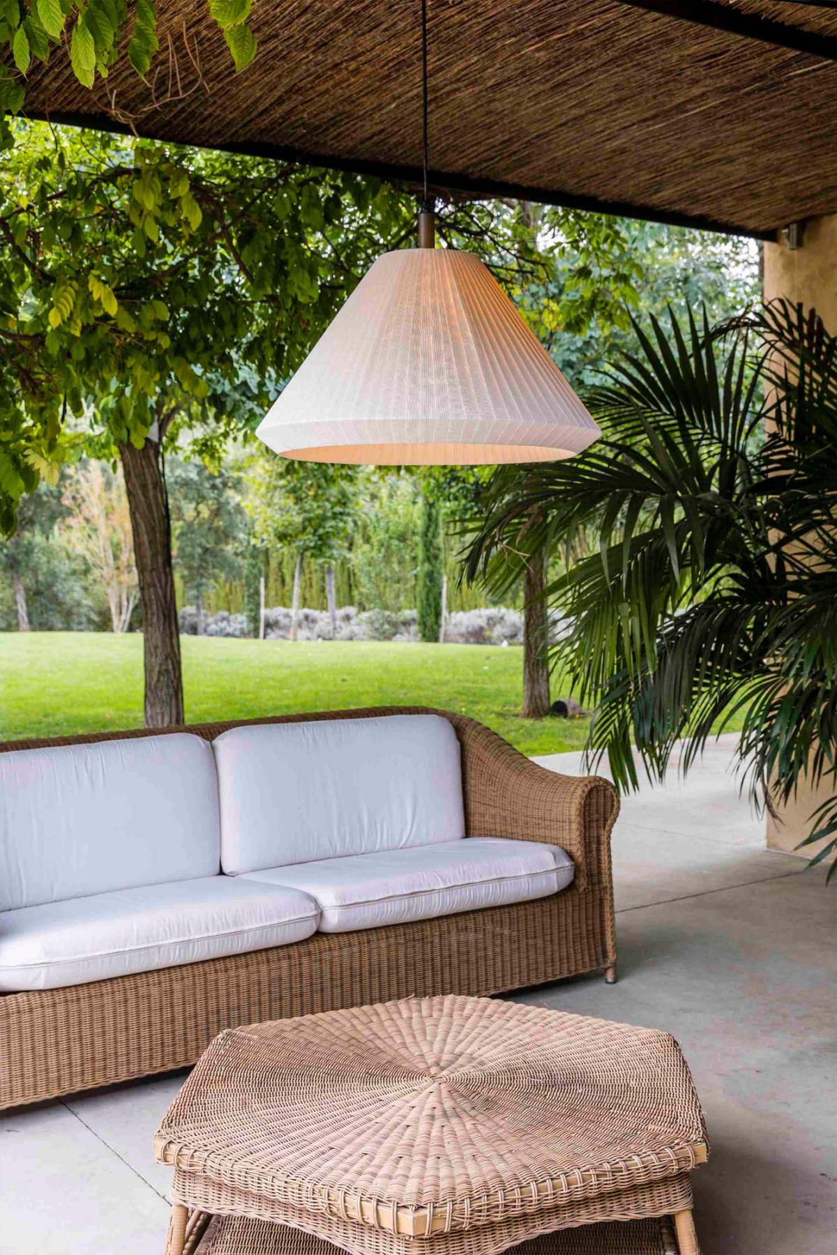 SAIGON - это набор дизайнерских ламп Nahtrang для наружного освещения. Для него характерны простота и чистые формы. Это подвесной светильник с плафоном Т70 с непрозрачным белым цоколем. Экран изготовлен из текстиля - высококачественного материала, который очень хорошо выдерживает перепады температур.