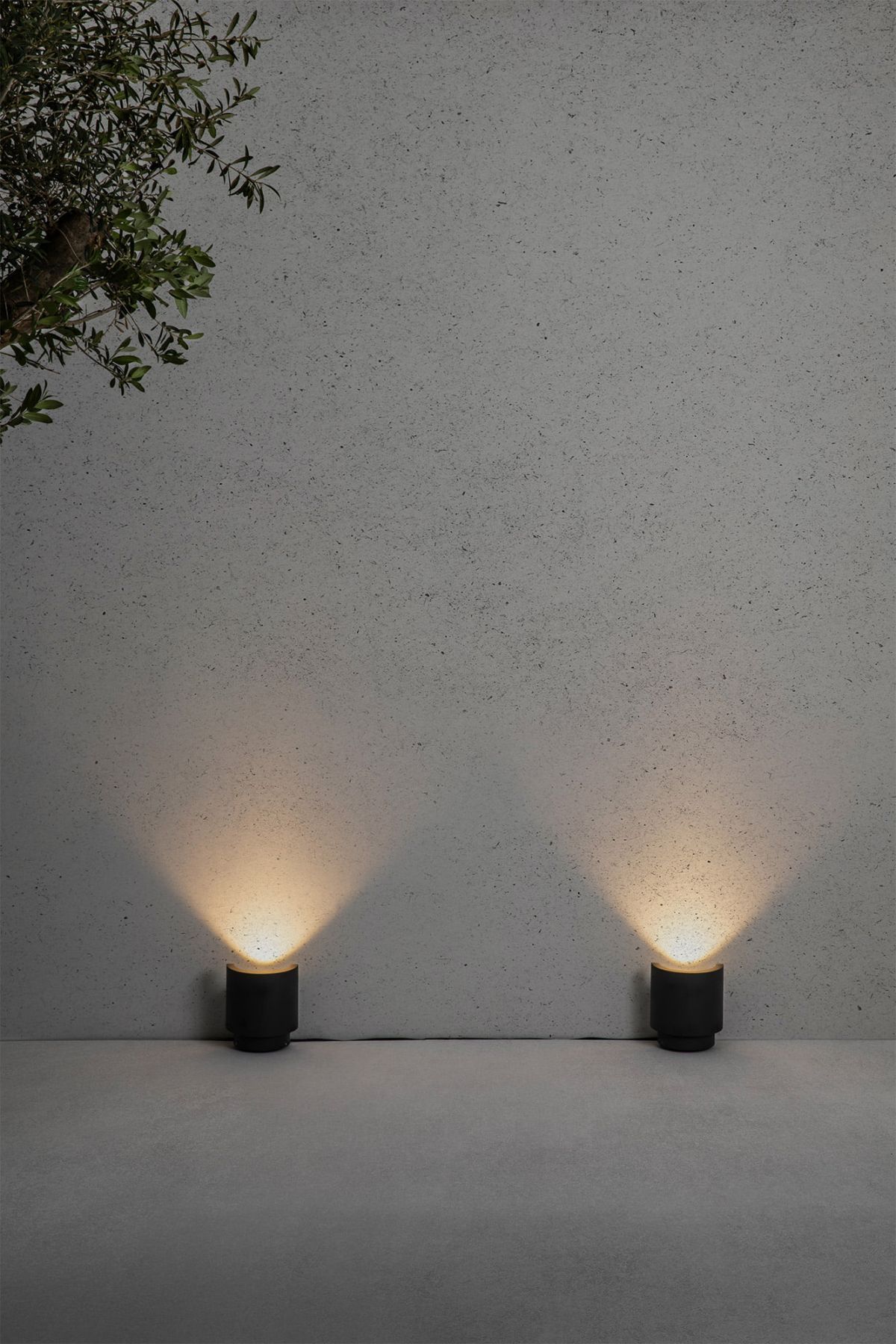 NOBORU - темно-серый проектор для наружного освещения фасадов . Он устанавливается на поверхности и позволяет купаться в стенах без бликов