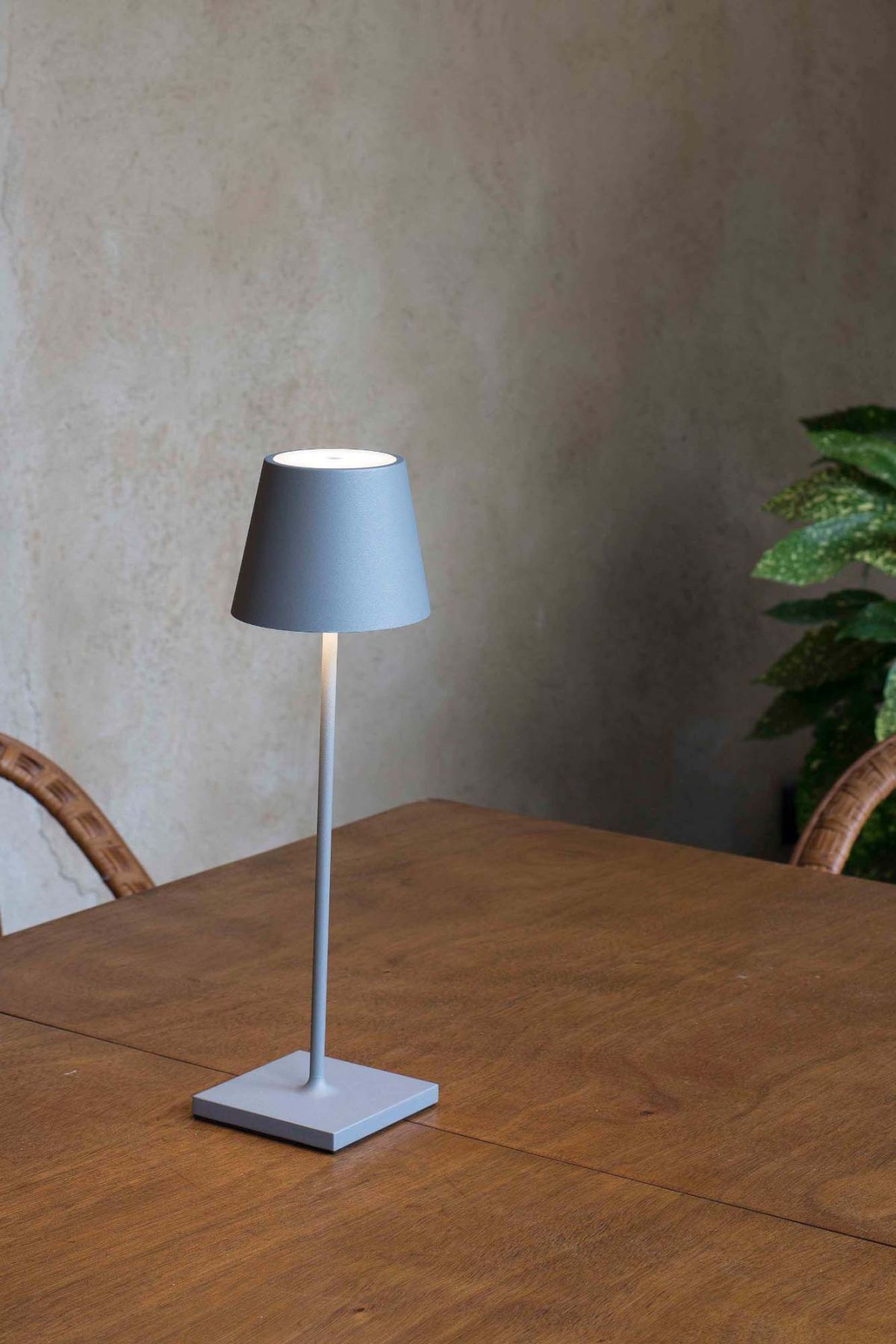 TOC - это серая переносная настольная лампа для освещения садов и террас. Классический, но отремонтированный стиль. Эта оригинальная переносная лампа легко зажигается благодаря сенсорной системе .