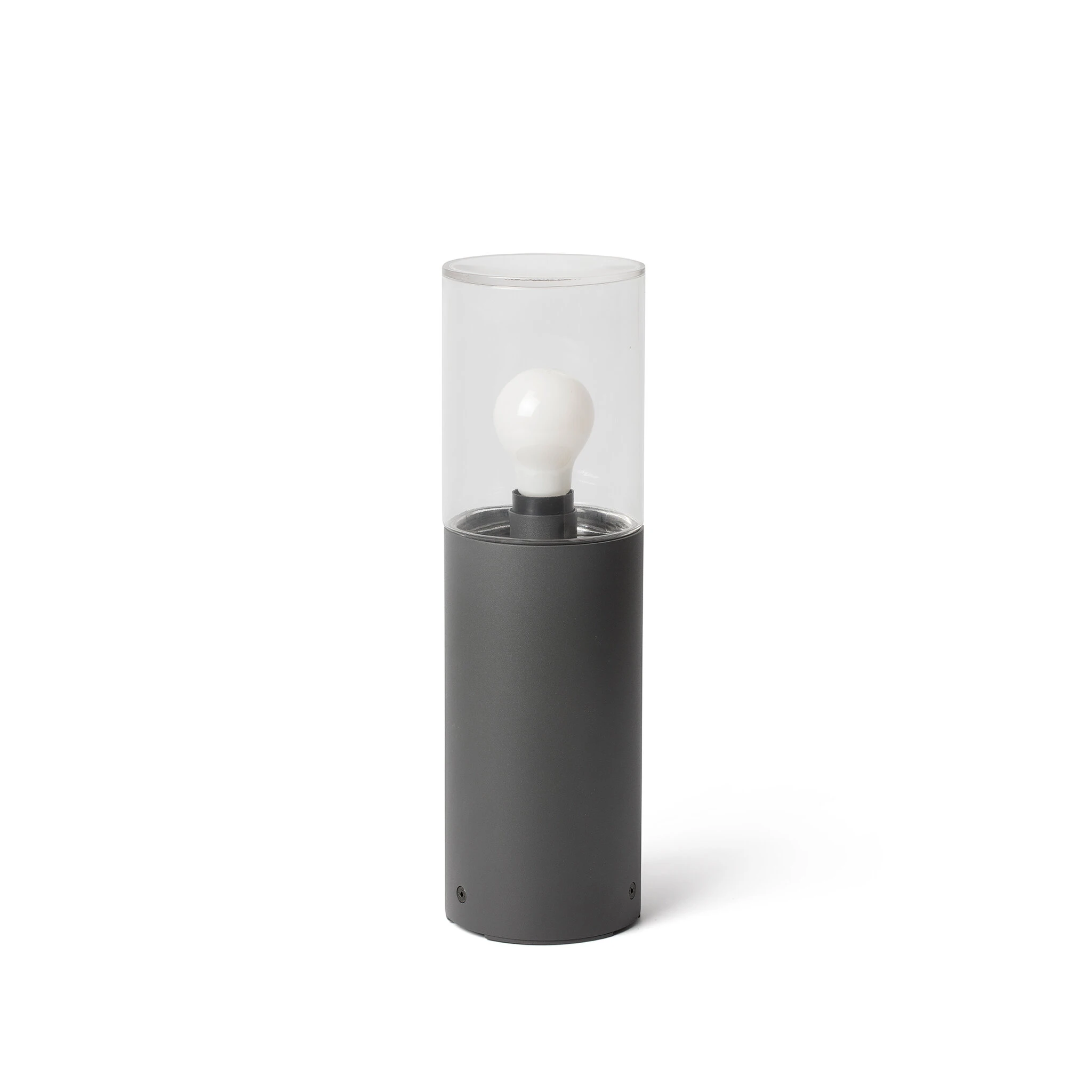 KILA — это коллекция наружного освещения из алюминия и стекла. Его дизайн идеально отделяет серую структуру полупрозрачного рассеивателя, позволяет видеть лампочку. Эта темно-серая лампа-маяк идеально подходит для декоративного освещения садов. версия 40 см.