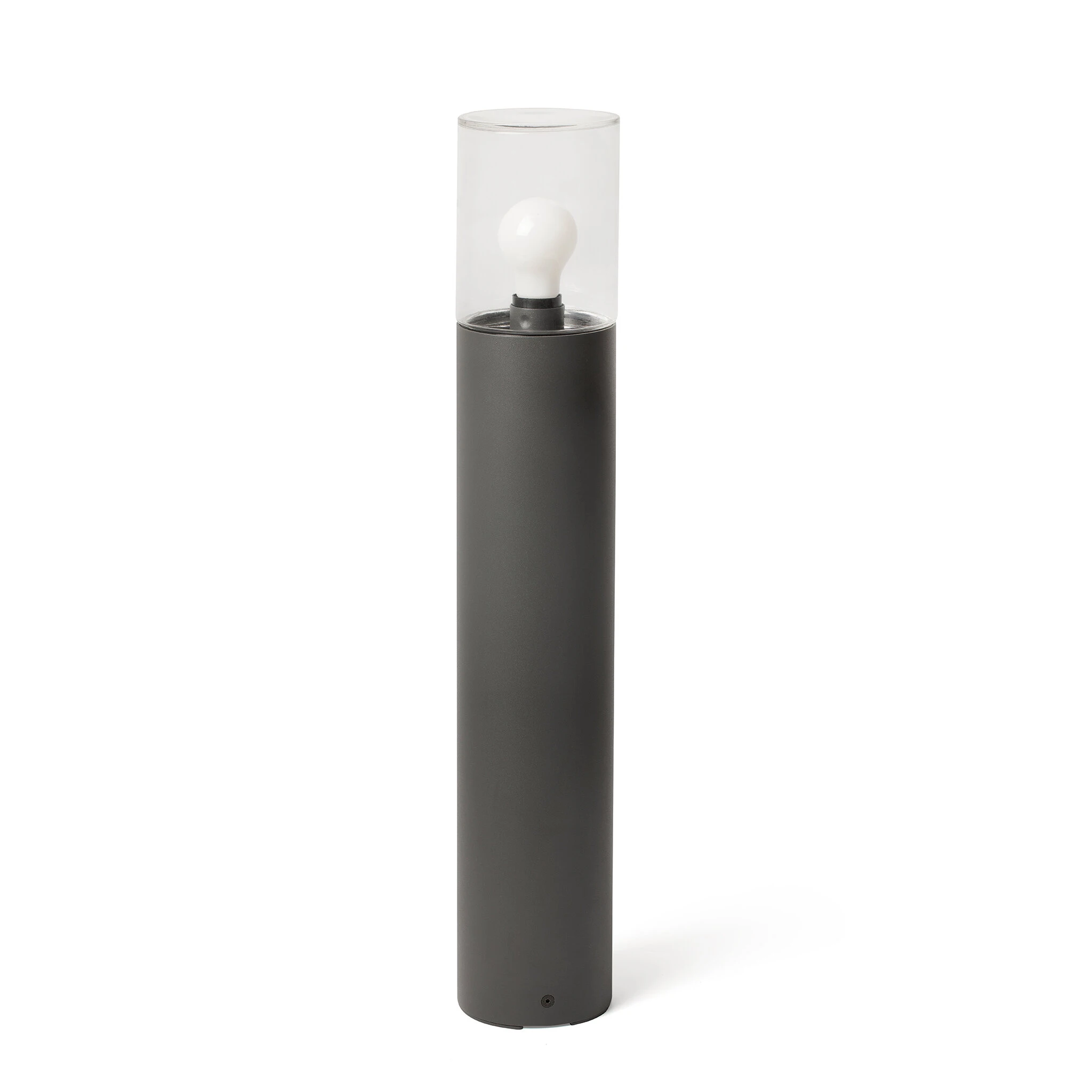 KILA — это коллекция наружного освещения из алюминия и стекла. Его дизайн идеально отделяет серую структуру полупрозрачного рассеивателя, позволяет видеть лампочку. Эта темно-серая лампа-маяк идеально подходит для декоративного освещения садов. версия 70 см.