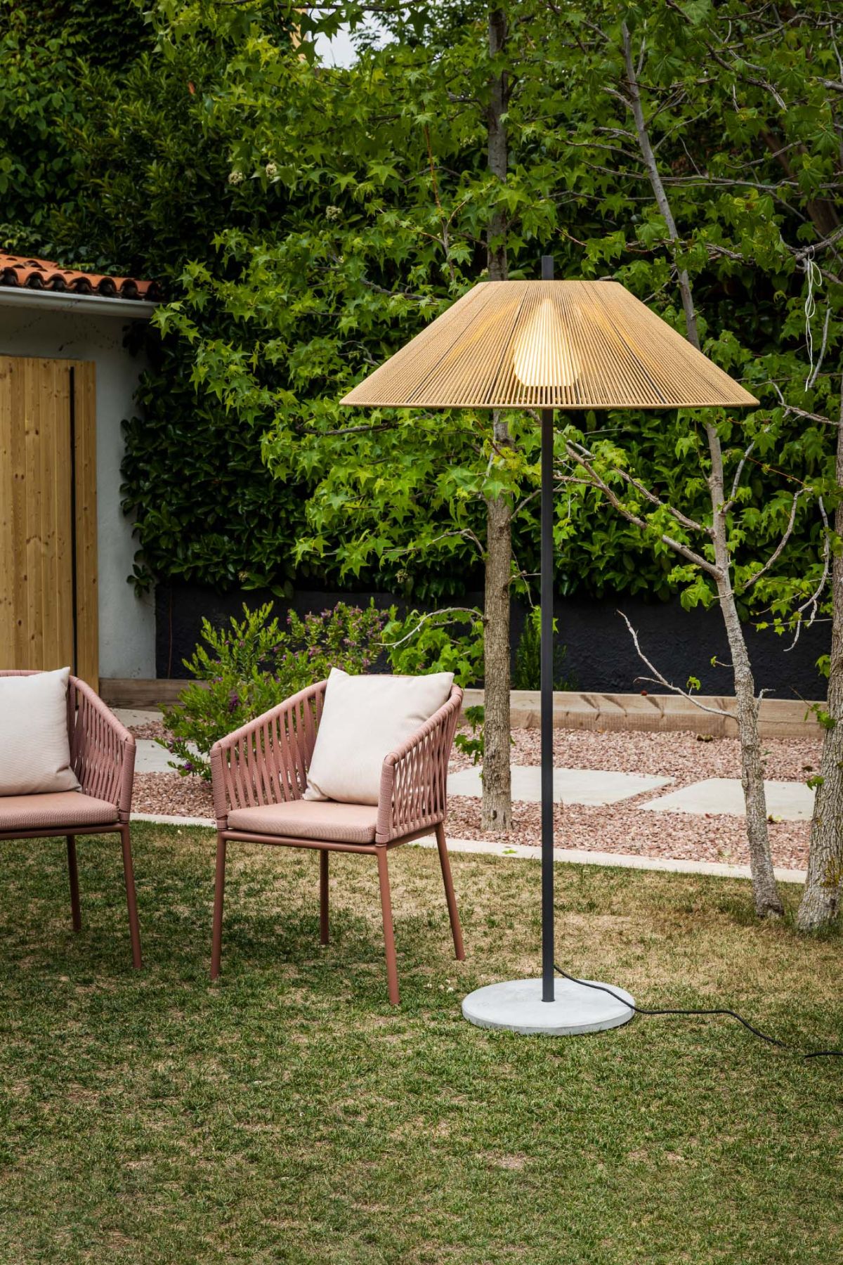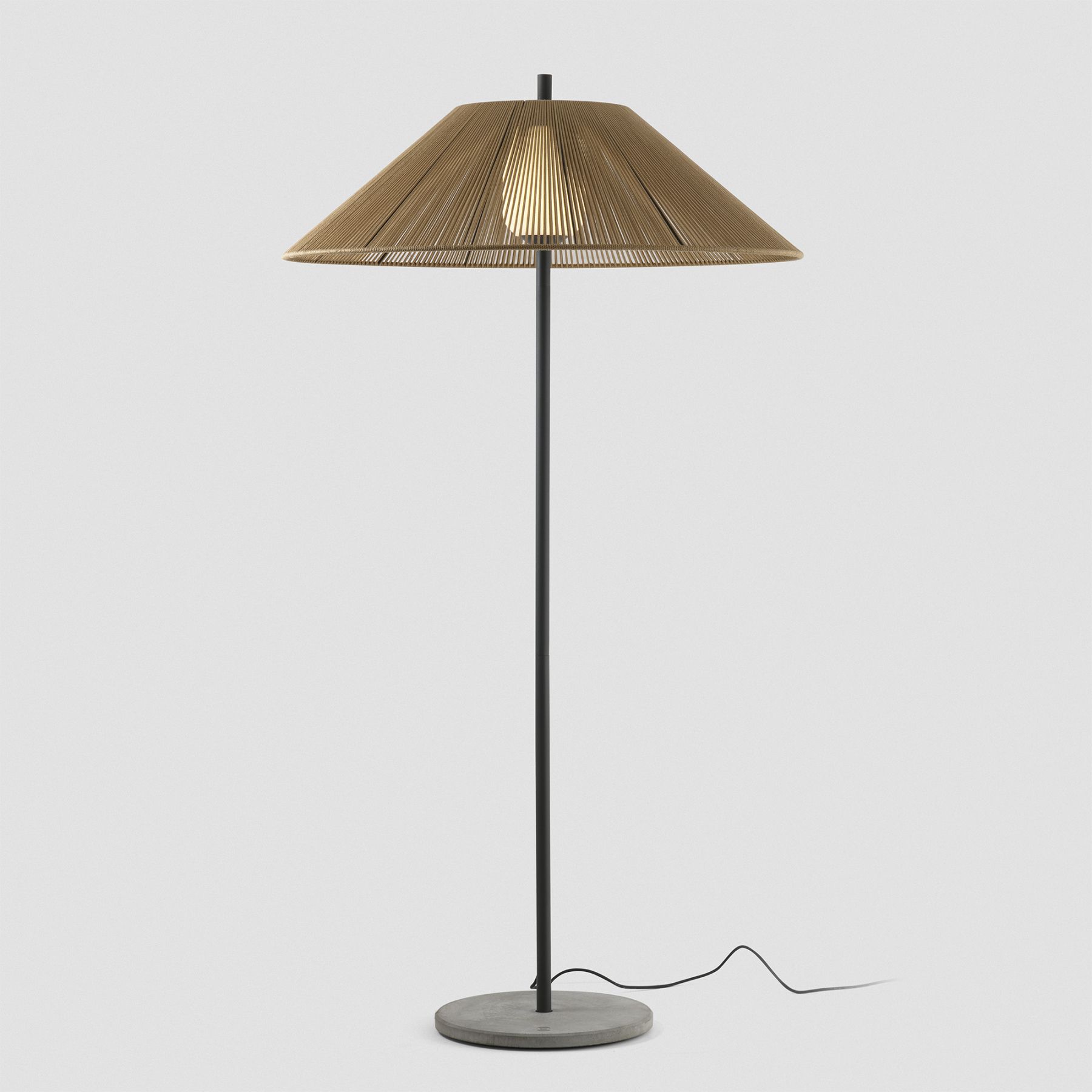 SAIGON — это коллекция дизайнерских светильников Nahtrang для наружного освещения. Он характеризуется простотой и чистым способом. Это торшер с абажуром цвета охры C100 2 м. Абажур изготовлен из плетеной синтетической ткани.