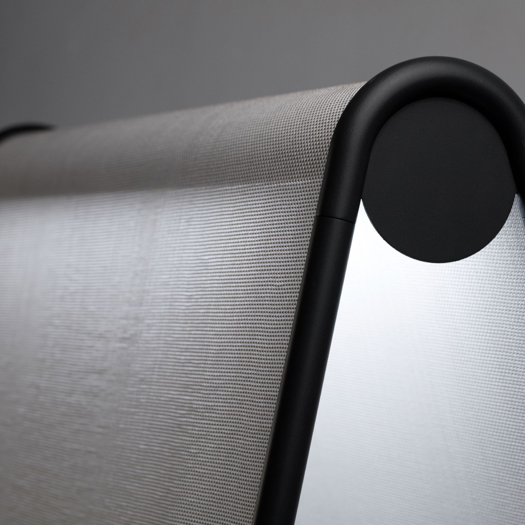 CADAQUÉS - это напольный торшер, разработанный Faro Lab. Его структура напоминает треугольник, а теплый луч света проецируется прямо из середины двух плафонов. Он изготовлен из алюминия и текстиля, высококачественного материала, который очень хорошо сопротивляется перепадам температур, а также используется для изготовления пляжных шезлонгов. У него есть аксессуар для крепления лампы к земле и один для увеличения длины кабеля. Также в бежевой отделке.
