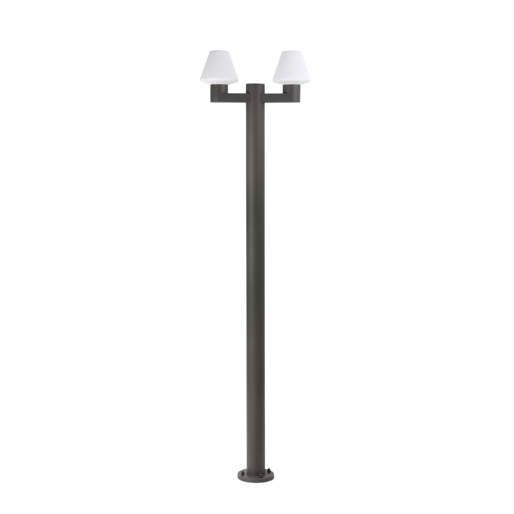 MISTU — это фонарь на мачте для наружного освещения, изготовленный из алюминия и опалового поликарбоната. Версия с двумя плафонами.
