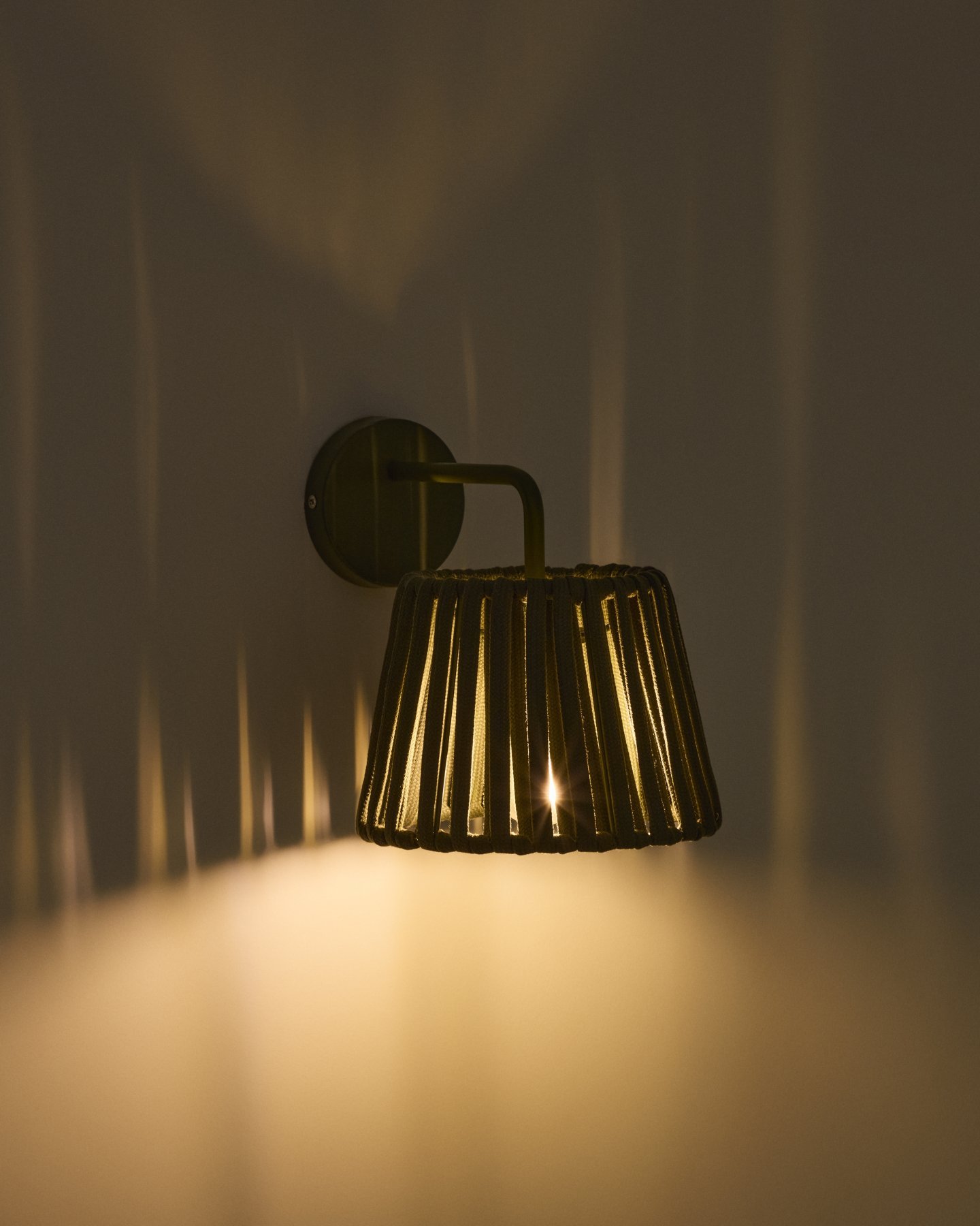 - Уличный настенный светильник Aldet из зеленой веревки и металла