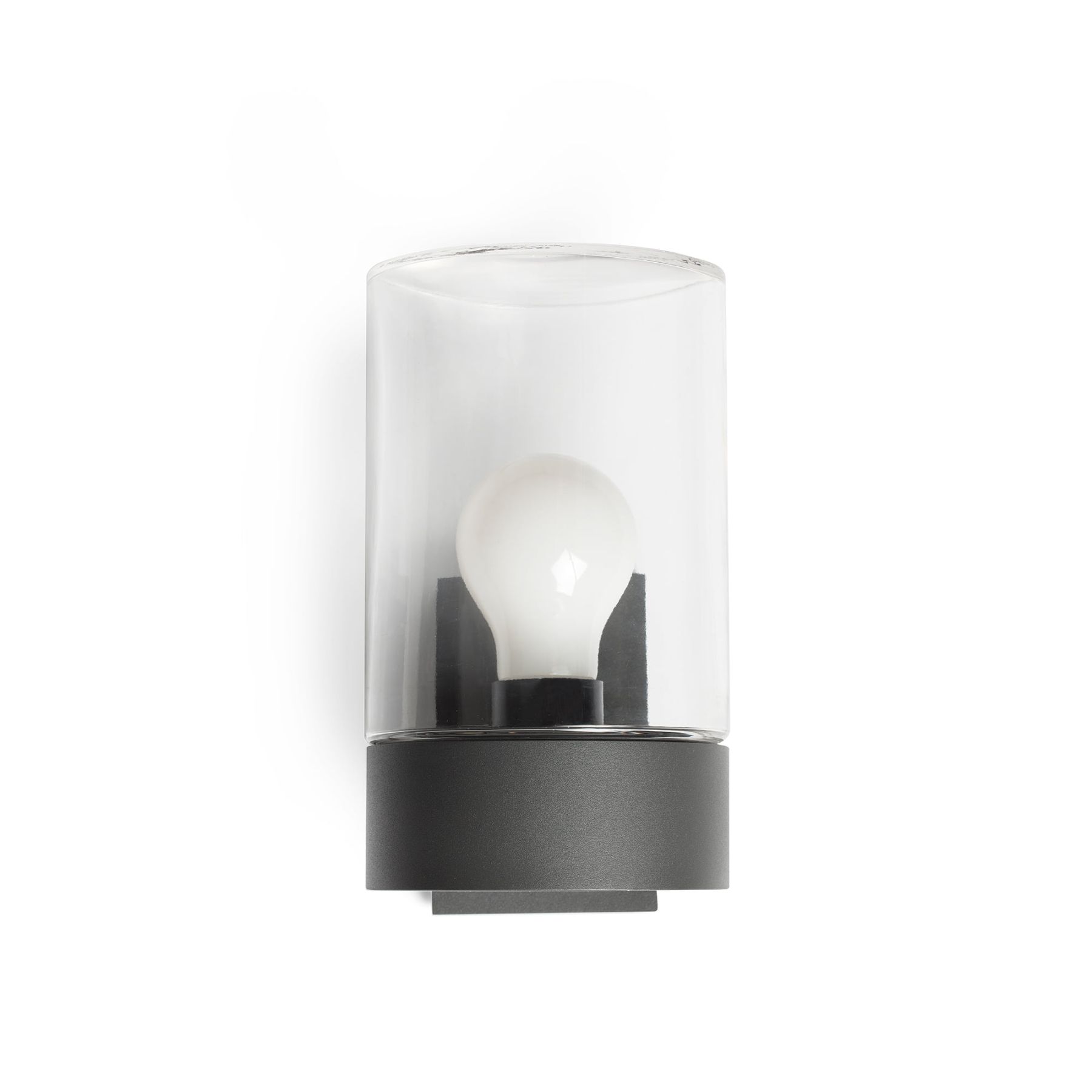 KILA — это коллекция наружного освещения из алюминия и стекла. Его дизайн идеально отделяет серую структуру полупрозрачного рассеивателя, позволяя видеть лампочку. Этот темно-серый настенный светильник идеально подходит для входов, веранд и террас.