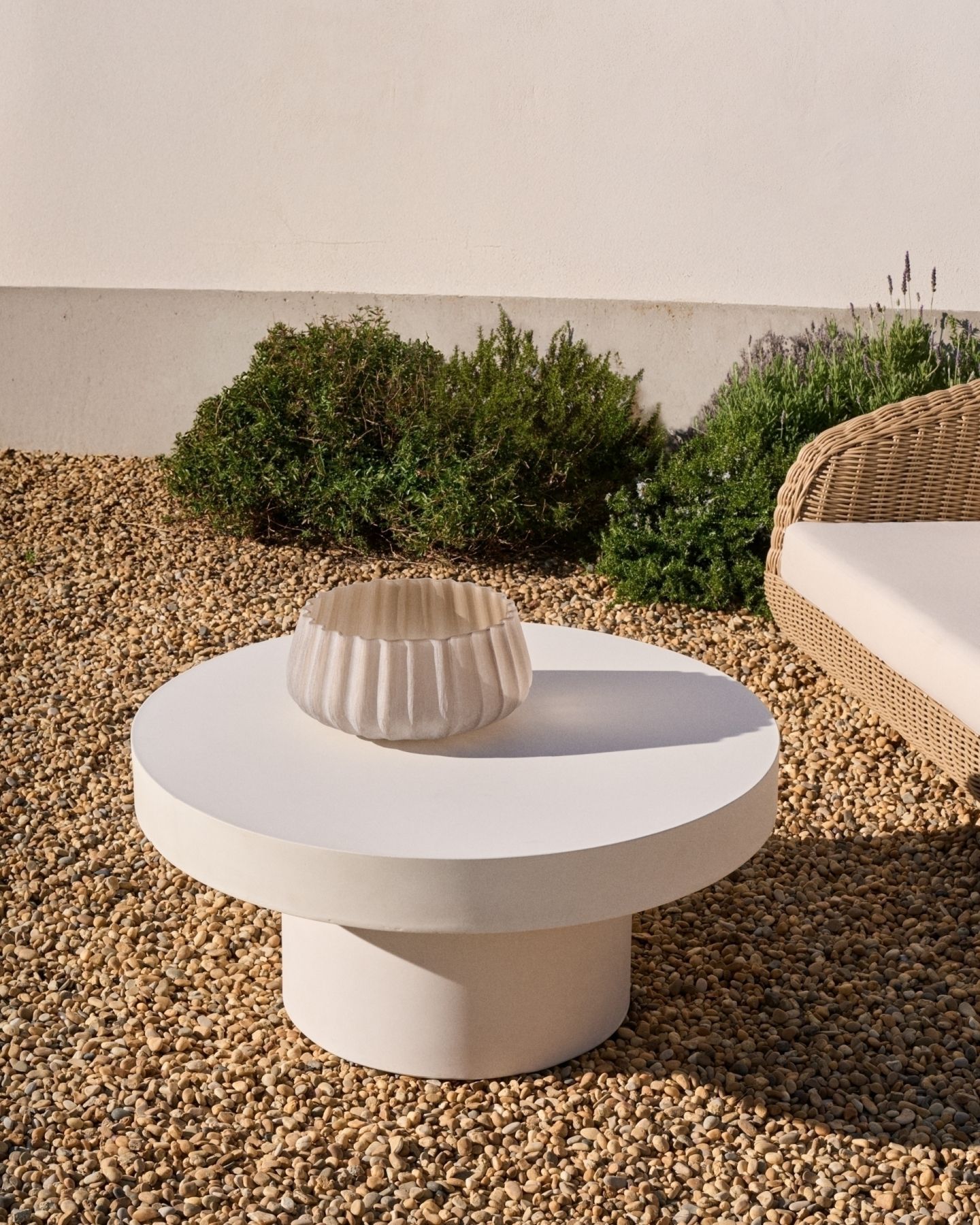 Круглый журнальный столик Aiguablava от фабрики La Forma (ex Julia Grup) – абсолютно долговечный предмет интерьера для уличного использования.