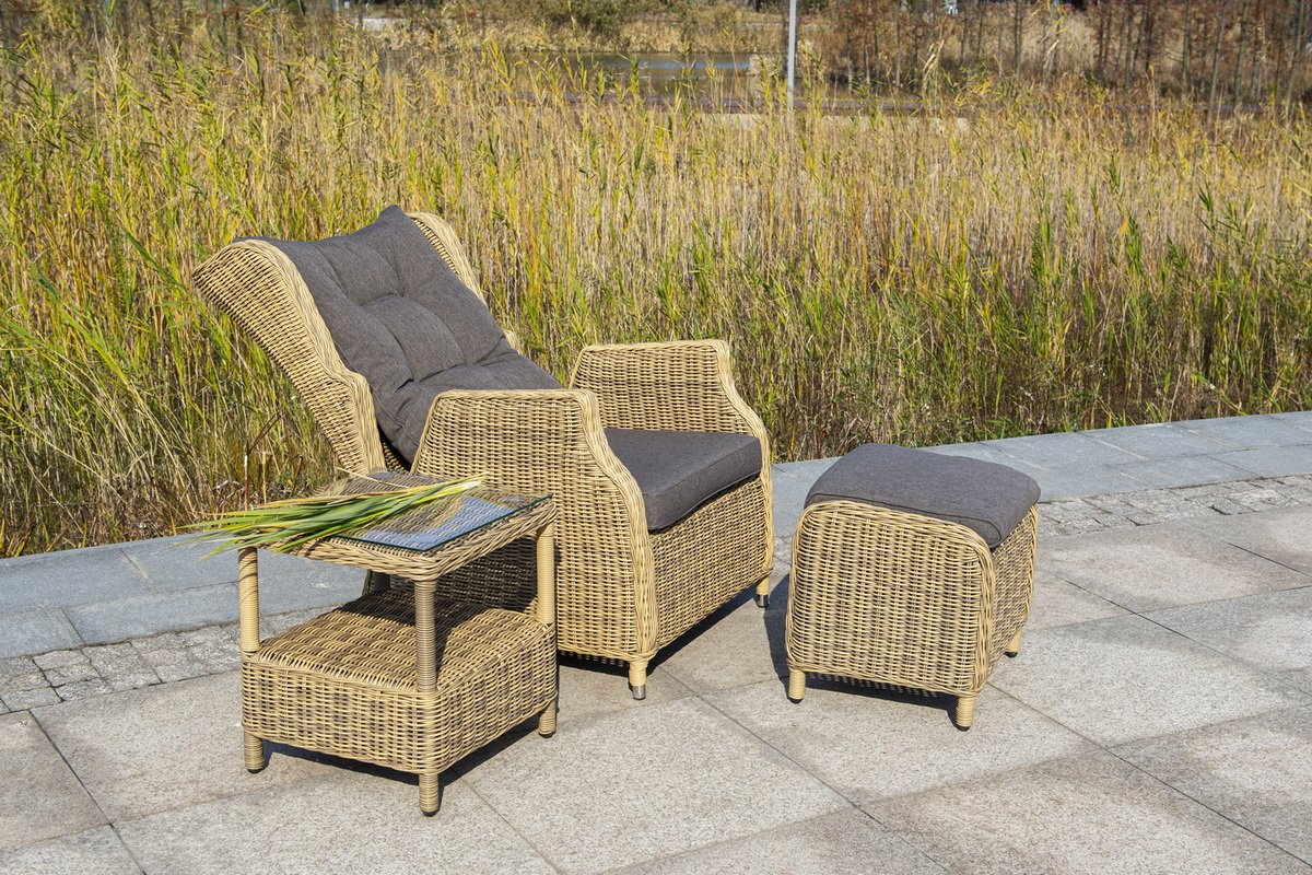 Мебель представлена в натуральном соломенном цвете.