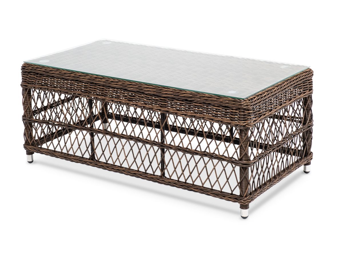 Каркас изготолен из алюминия, который гарантирует устойчивость при размещении на любой поверхности. В качестве декоративного элемента выступает ручная оплетка на основе круглого искусственного ротанга, представленного в коричневом оттенке.
