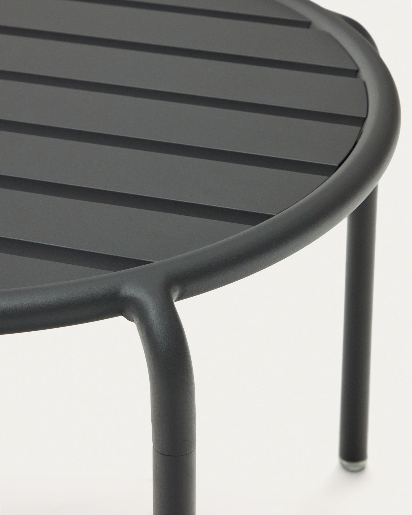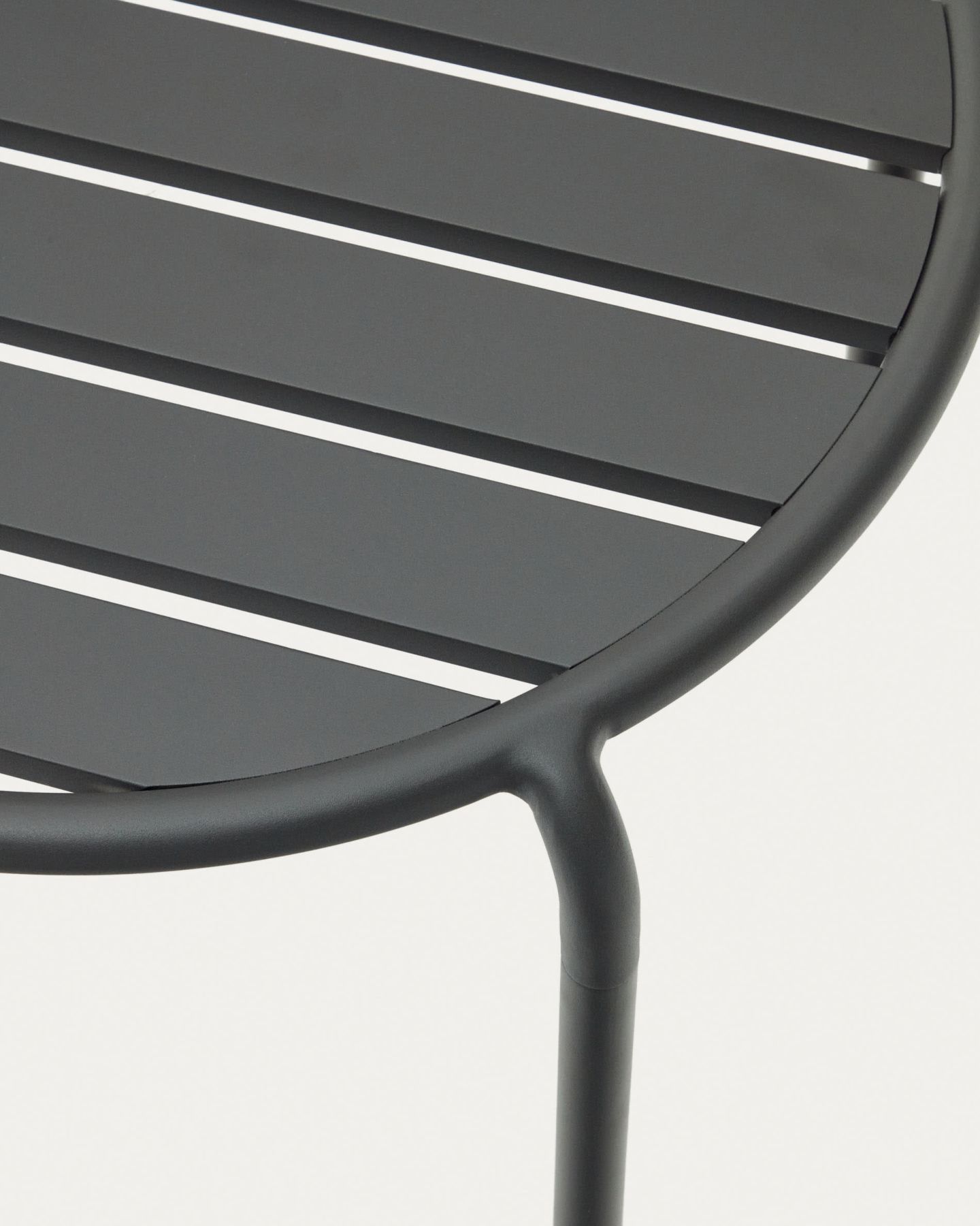 Столик полностью металлический – создан из алюминия, который окрашен в черный цвет матовой эмалью для защиты от атмосферных воздействий.