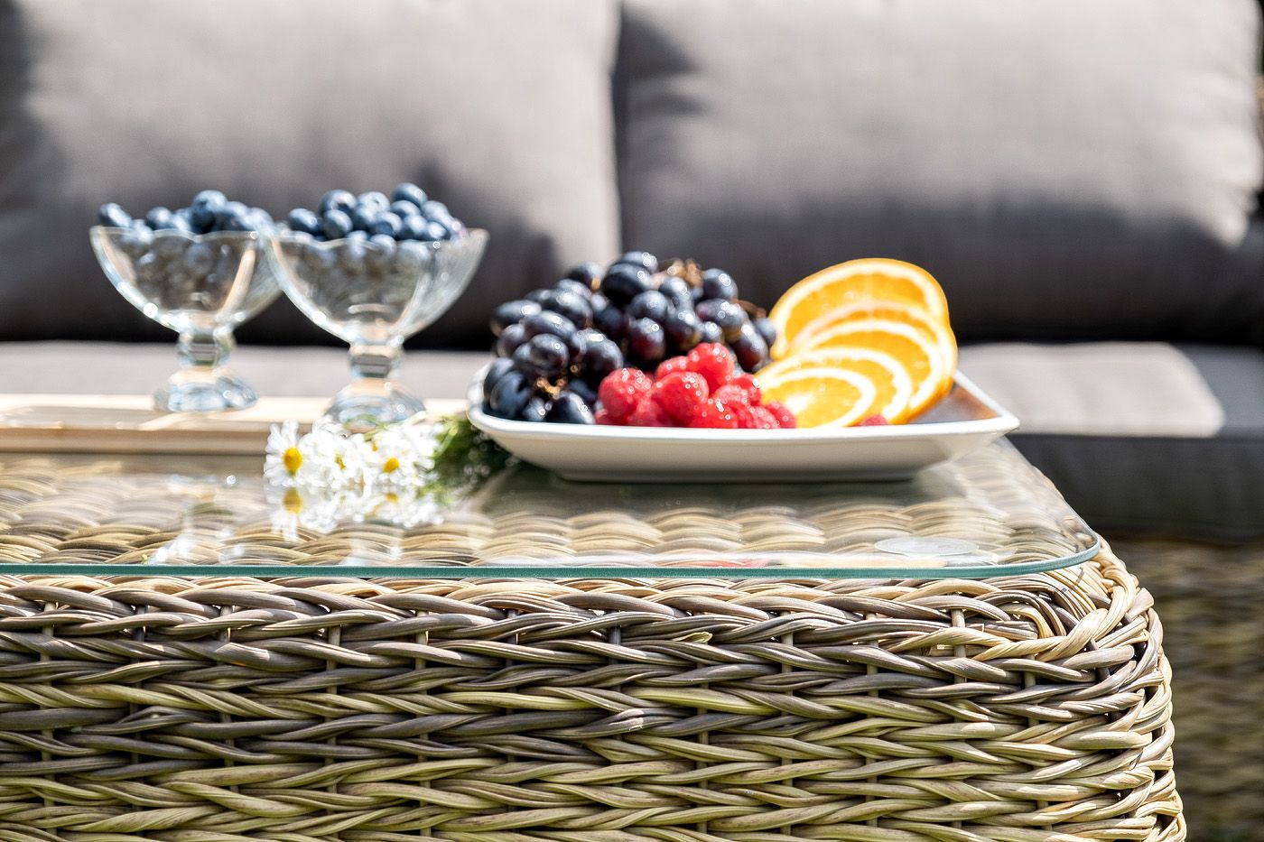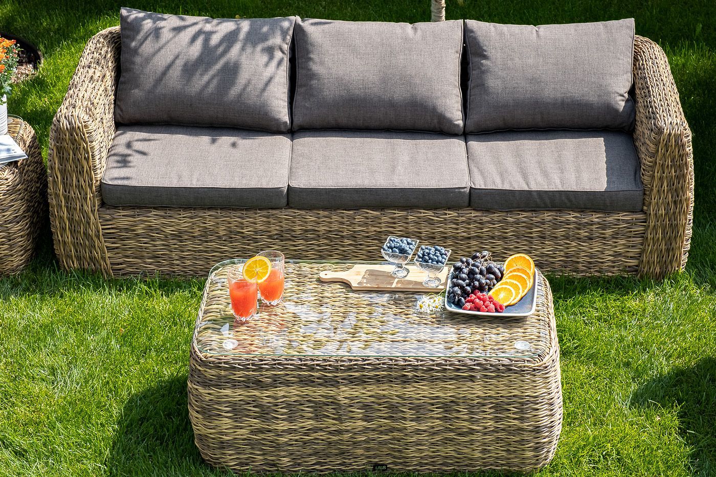 Каркас столика изготовлен из алюминия, вручную оплетенного круглым искусственным ротангом "гиацинт".