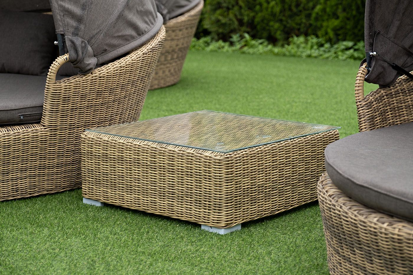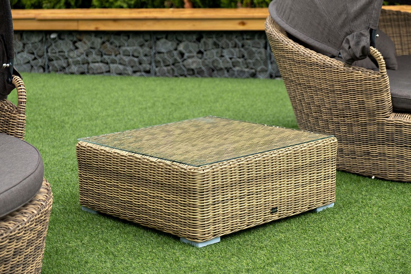 Компактные габариты позволяют удобно разместить мебельный элемент в месте с ограниченным свободным пространством. Столик имеет прочный алюминиевый каркас. Ручное круглое плетение сделано из искусственного ротанга и представлено в соломенном цвете.