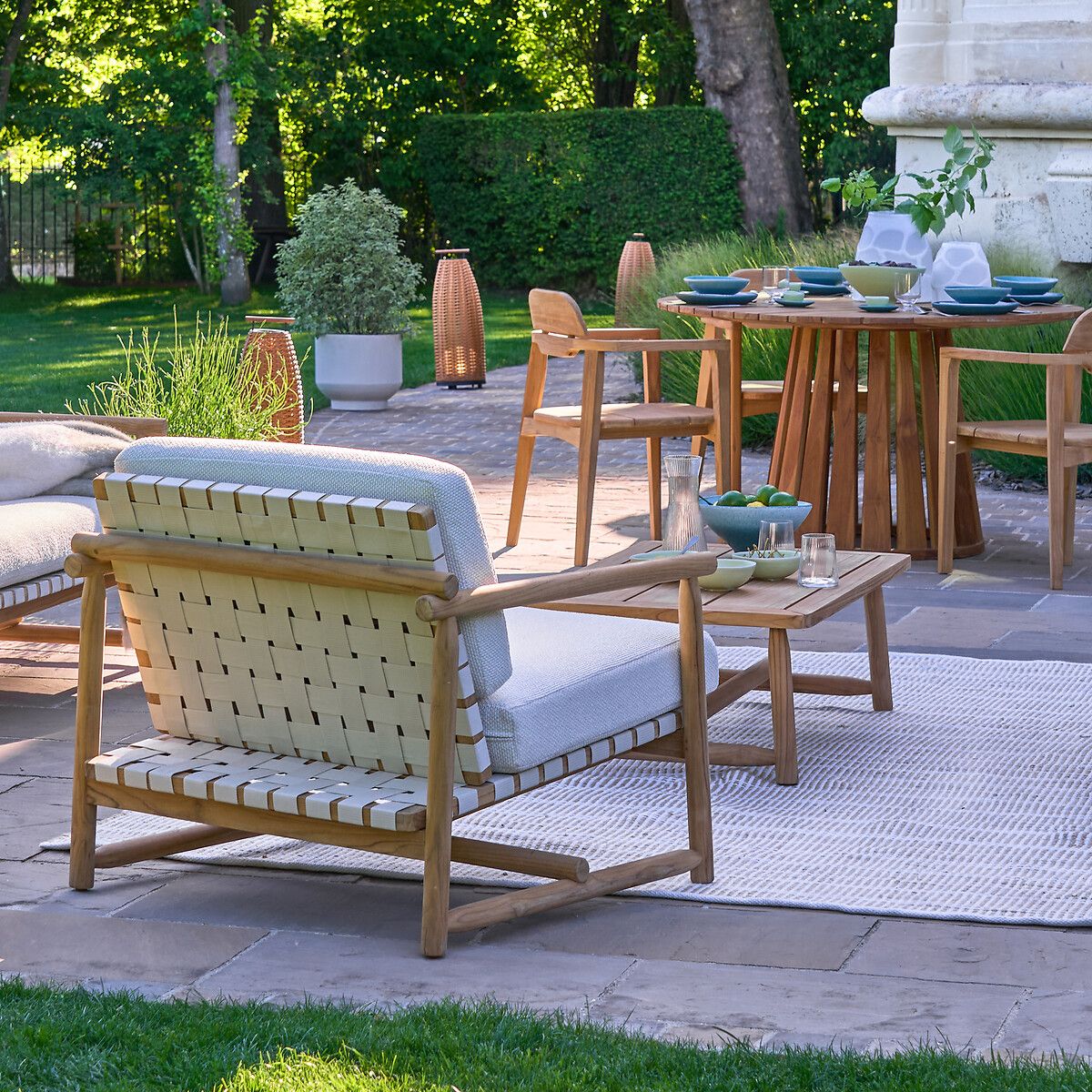 Массив тика – это порода древесины, идеально подходящая для использования на открытом воздухе. Он пропитан маслом, которое придает ему долговечность и устойчивость к непогоде, насекомым и грибкам.