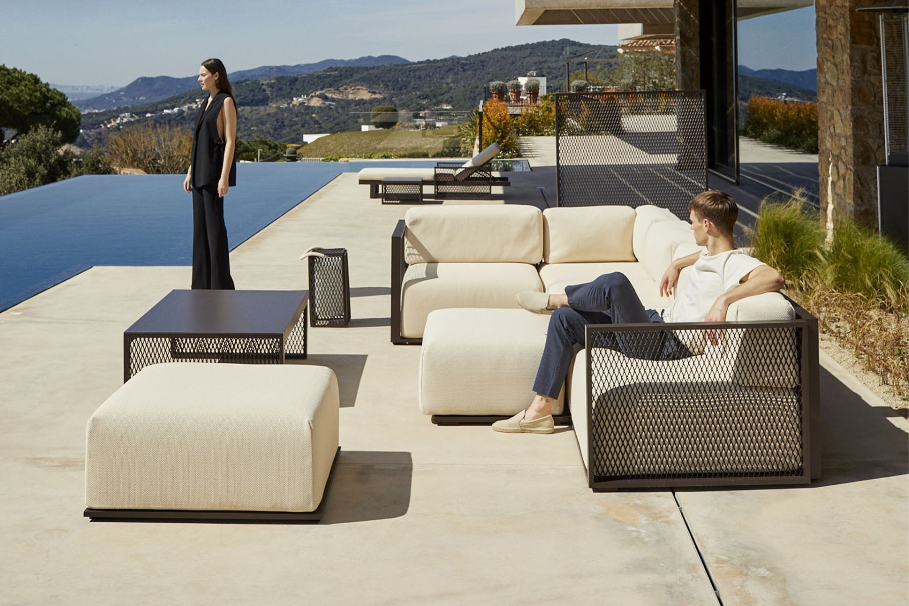 Коллекция Factory, разработанная Рамоном Эстеве для Vondom, отличается алюминиевым профилем и сеткой “deployé”. Откройте для себя эту коллекцию алюминиевой мебели, состоящую из модульного дивана, кресла, шезлонга, приставного столика, лампы, журнального столика, высокого столика, стульев и перегородки.