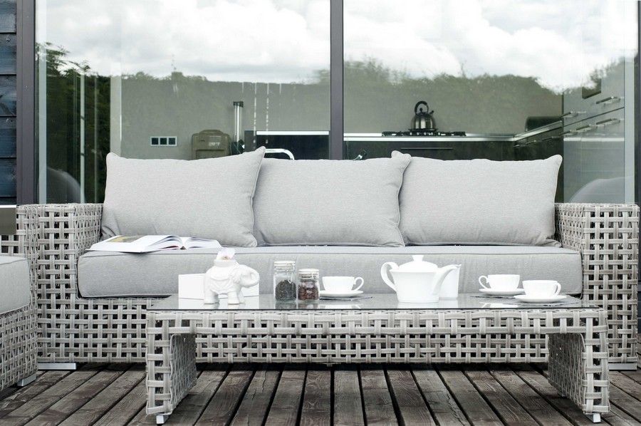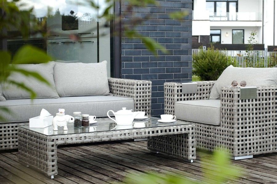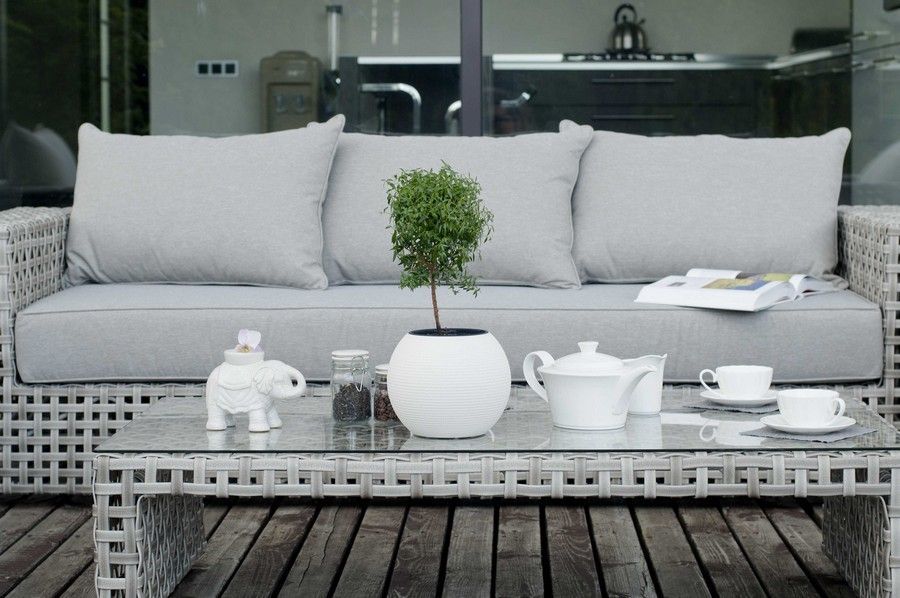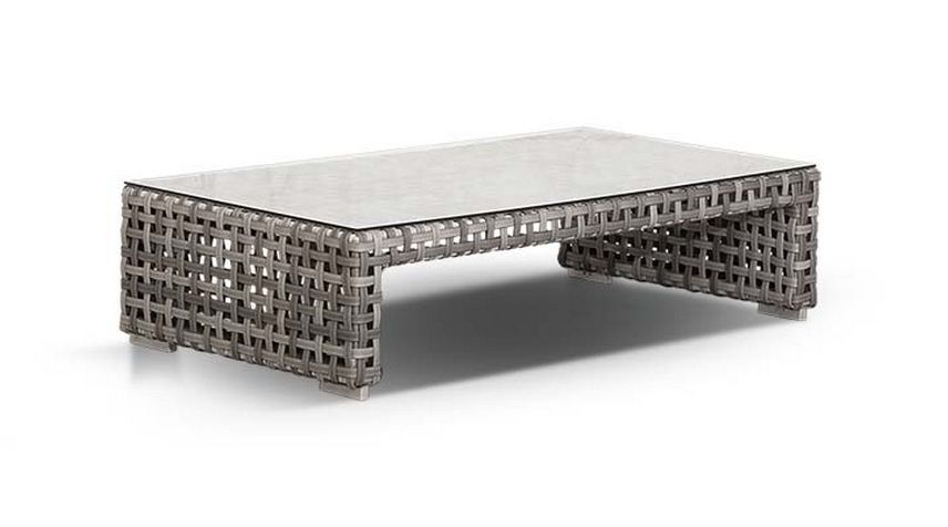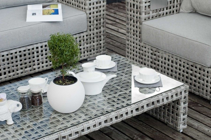 В основе мебели находится алюминиевый каркас высокой прочности. Декоративной составляющей является ручная круглая оплетка, которая выполнена из искусственного ротанга 18x3,5 мм. Столик представлен в сером цвете.