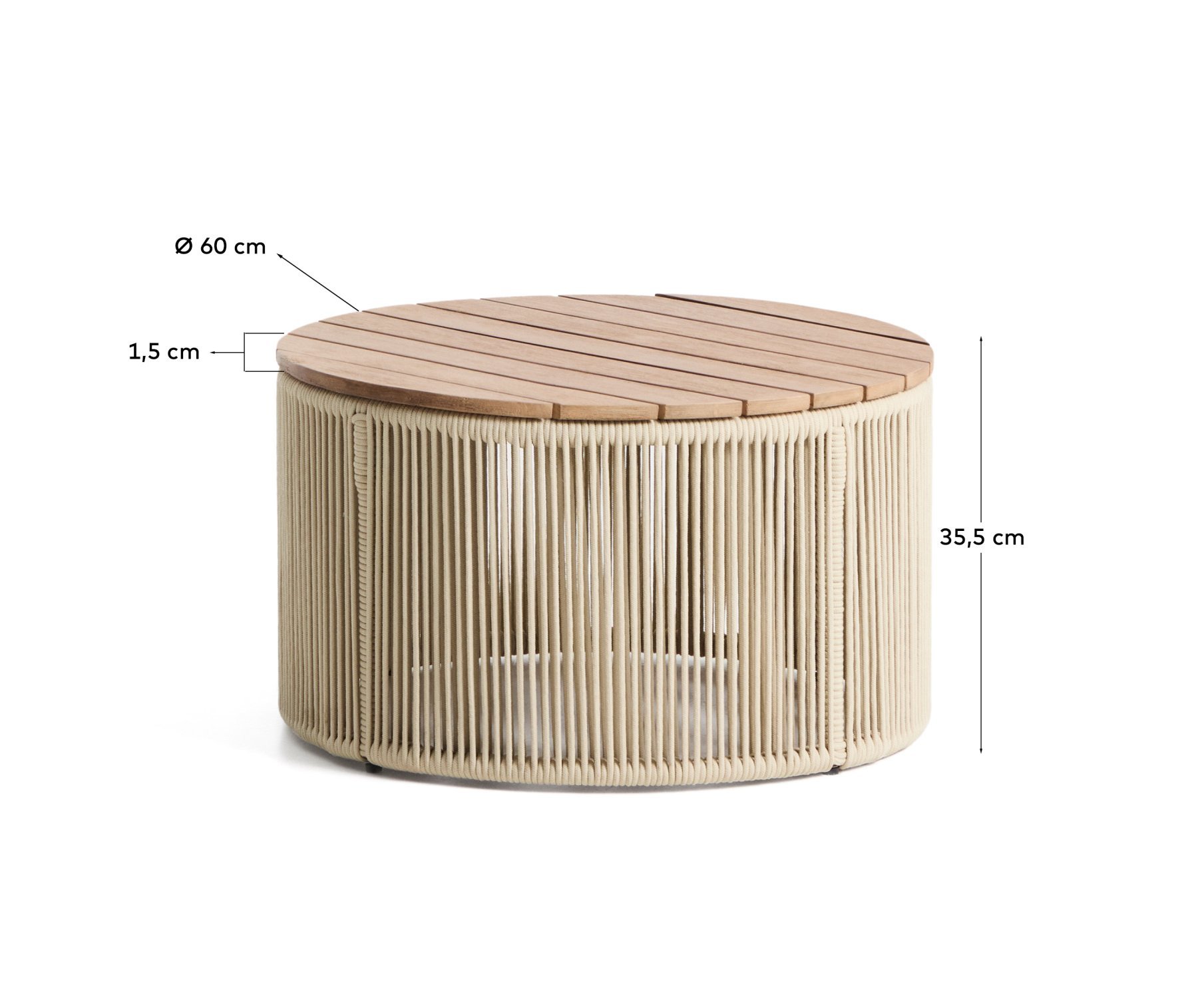 тол Dandara сочетает в себе устойчивость и баланс в дизайне, созданном для использования на открытом воздухе. Его обработанная стальная конструкция обеспечивает высокую защиту от ржавчины, в то время как столешница из массива акации обеспечивает прочность и безмятежное присутствие. Плетение веревочного шнура усиливает его структуру и добавляет деталь ручной работы, которая завершает его характер. Изготовленная из 100% сертифицированной FSC™ древесины, полученной из ответственно управляемых лесов, она отражает приверженность долговечности и окружающей среде.