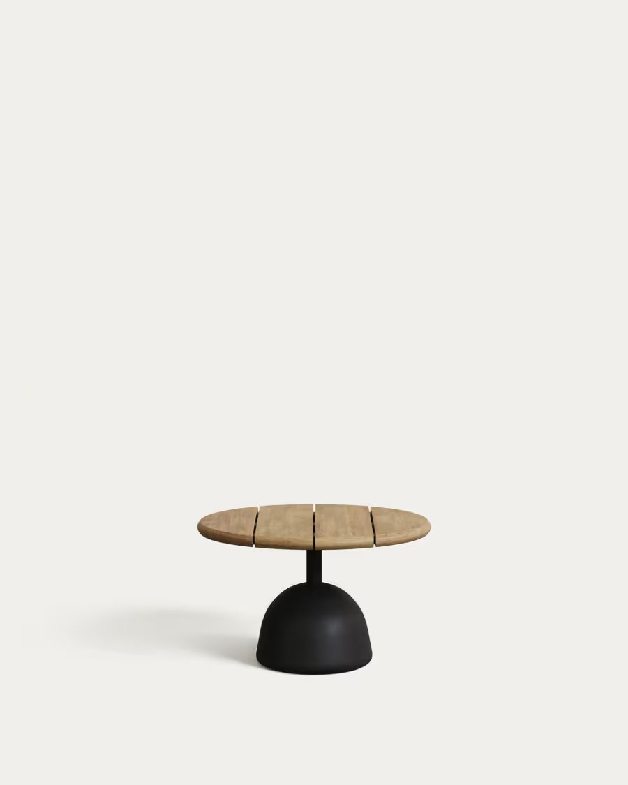 Журнальный столик Saura со столешницей из акации натуральной отделки и основанием из черного цемента Ø55x35см.