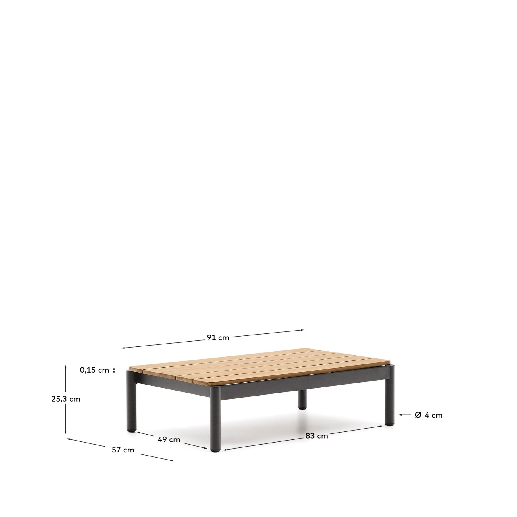 Алюминиевый журнальный столик со столешницей из тика сочетает в себе функциональность, дизайн и долговечность, чтобы улучшить любое открытое пространство. Специально разработанный для Kave Home by Made Studio, его алюминиевый каркас легкий, но невероятно прочный, что обеспечивает долгосрочное использование на открытом воздухе. Устойчивый к ржавчине, коррозии и вредным ультрафиолетовым лучам, он создан, чтобы выдерживать непогоду. Столешница из тика добавляет тепла и изысканности, известная своей исключительной долговечностью и устойчивостью в уличных условиях. Этот высококачественный материал легко справляется с влагой, обеспечивая надежность даже в самых суровых условиях.