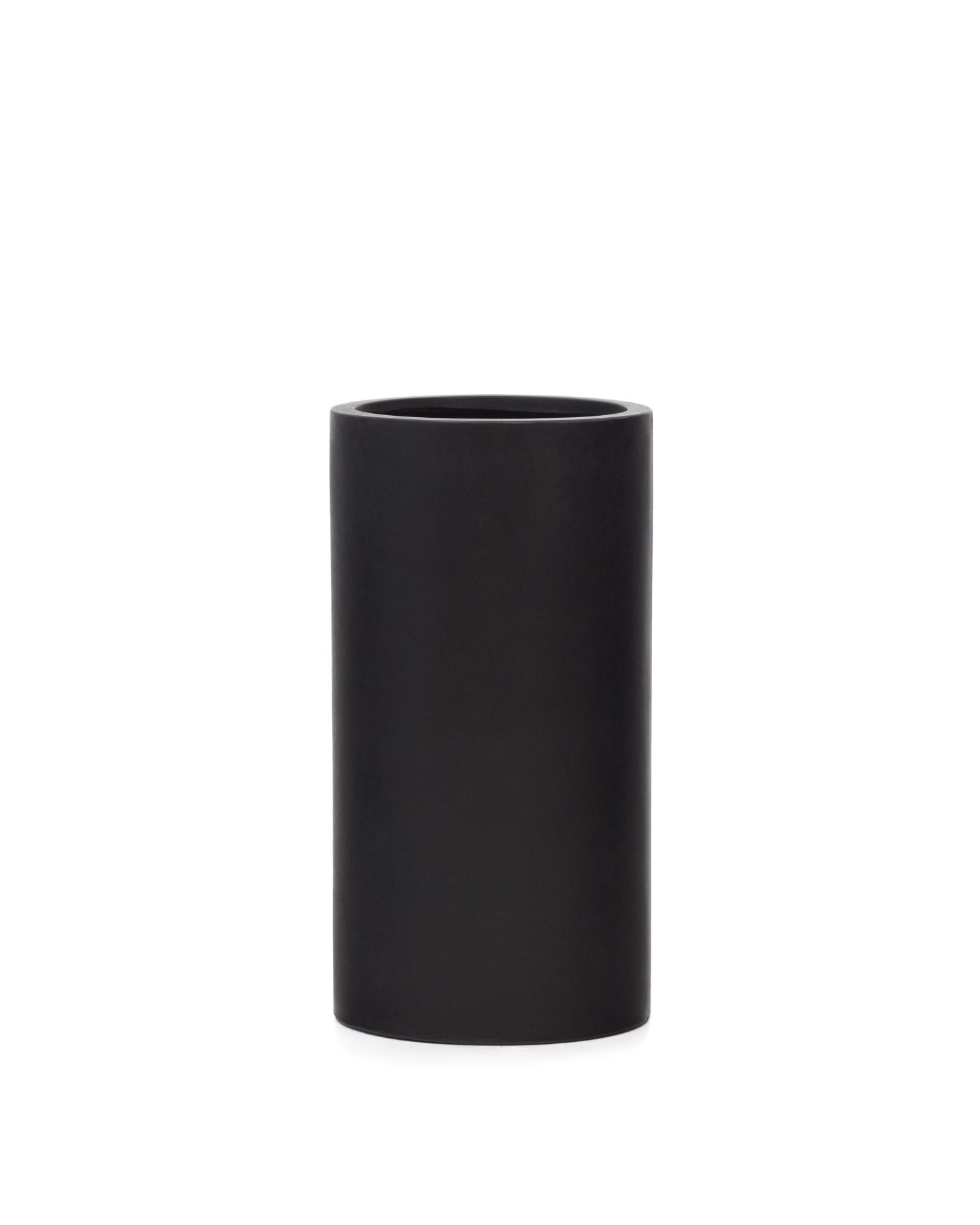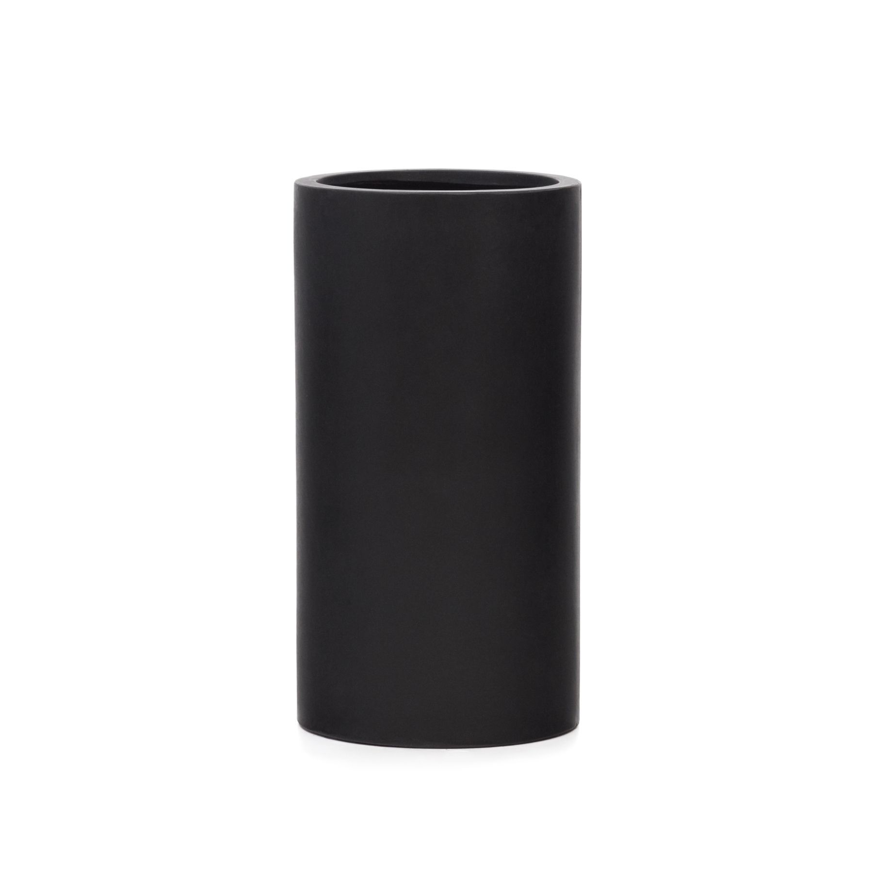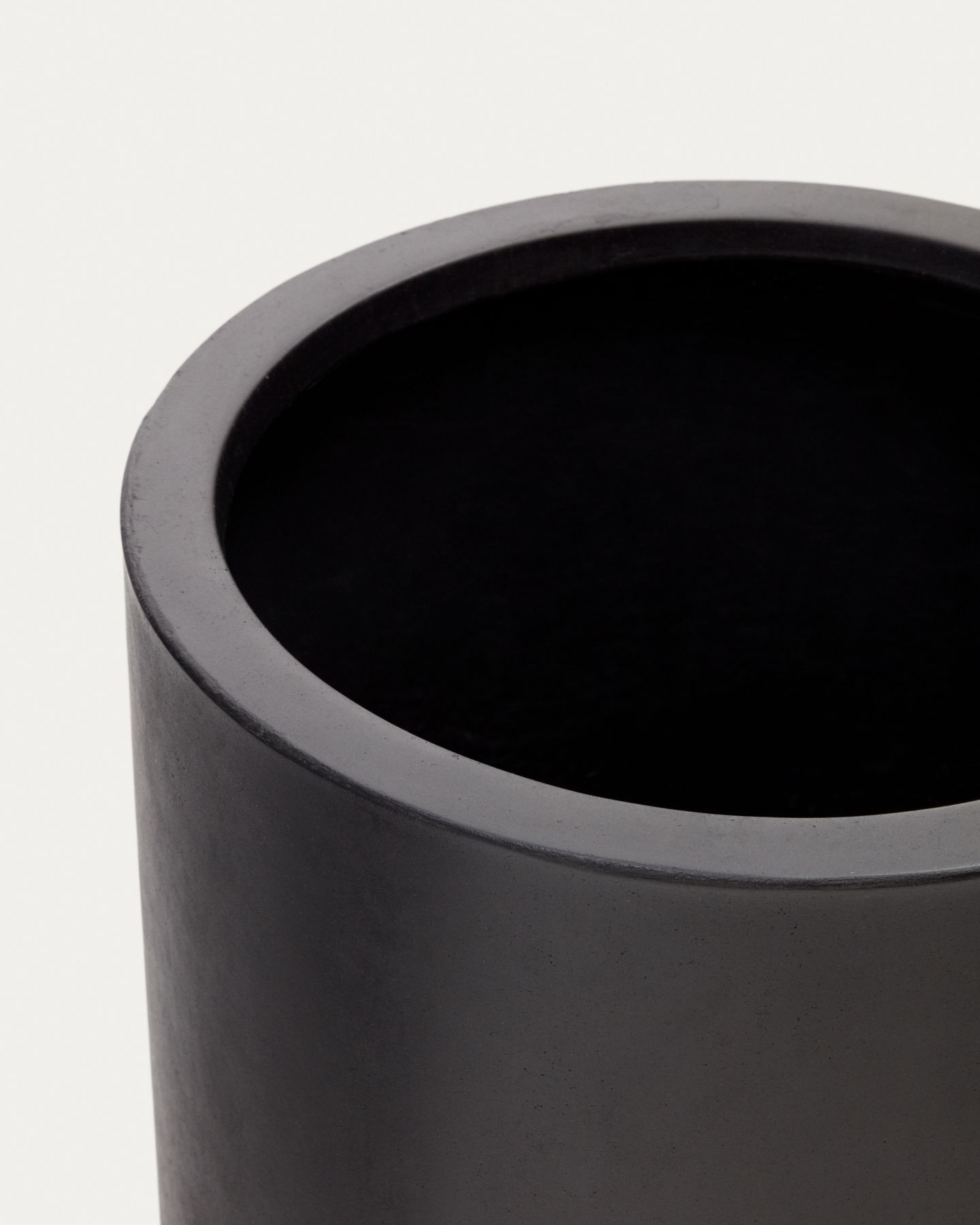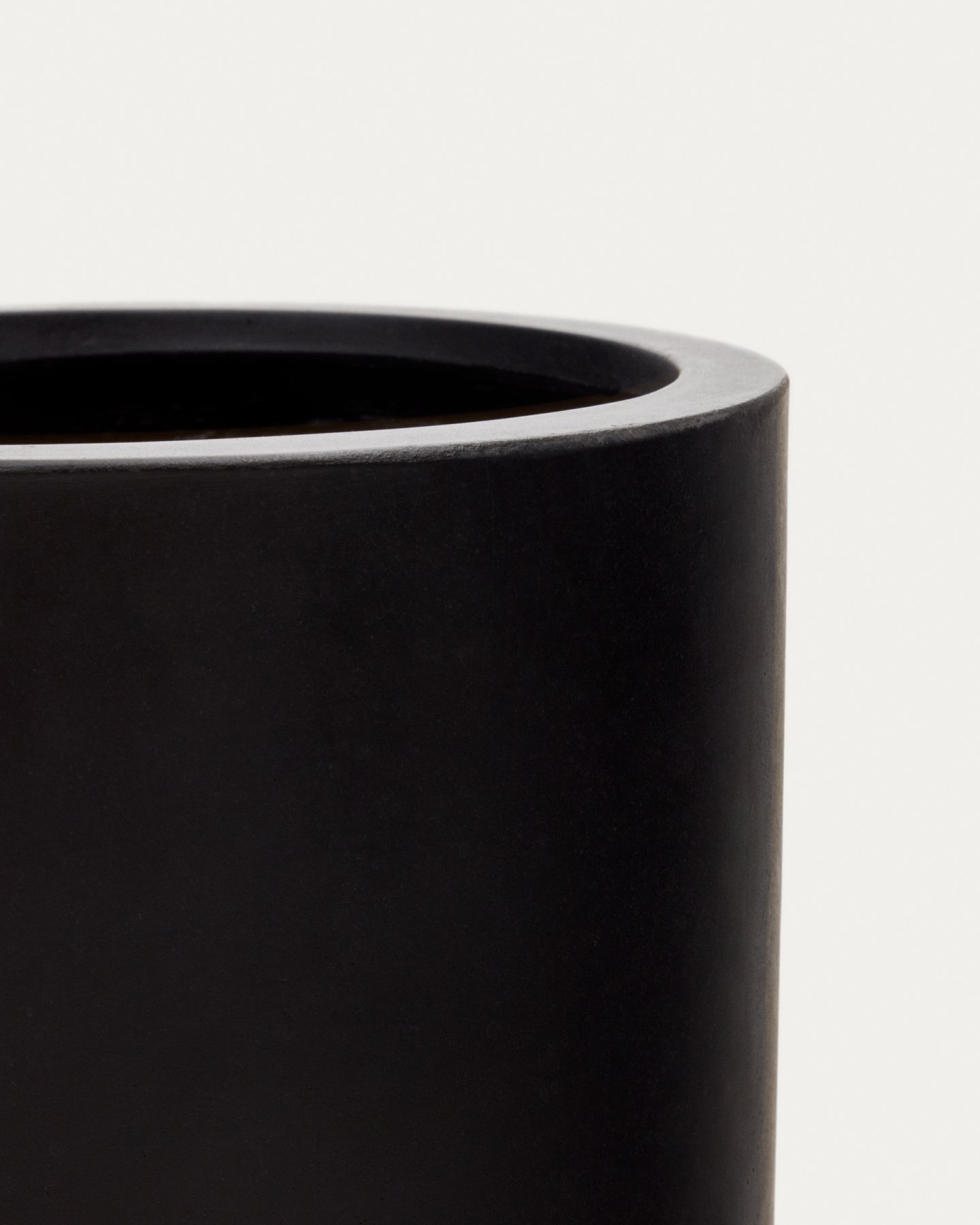 Кашпо имеет обтекаемую форму. Материал изготовления – цемент, с матовым покрытием черного цвета. Благодаря порошковой технологии нанесения краски, поверхность идеально ровная.
