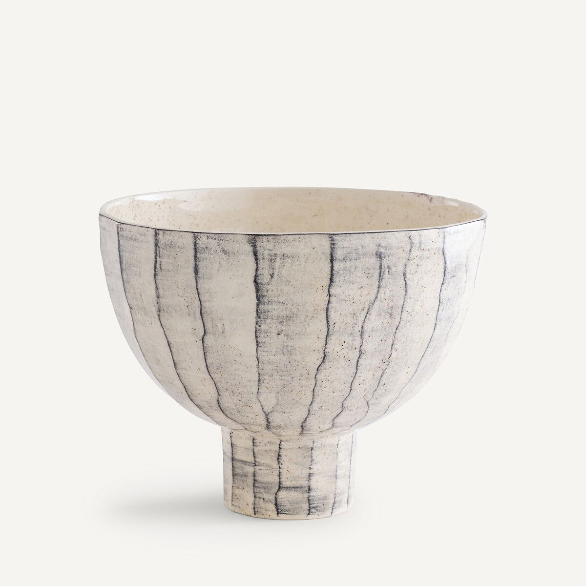 Декор в мелкую крапинку и в неравномерную полоску напоминает произведение ремесленного искусства. Округлый силуэт с мультисенсорным дизайном. Очень современное изделие.