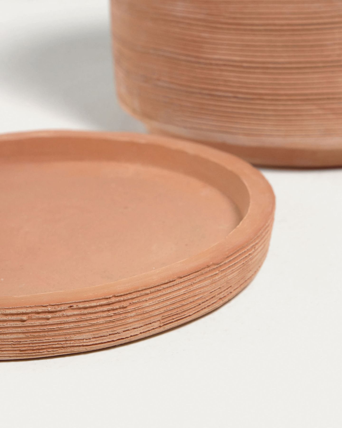 Эти горшки сделаны из терракоты, материала на минеральной основе, что является ключевой тенденцией дизайна и отличным способом сделать ваше пространство более естественным.