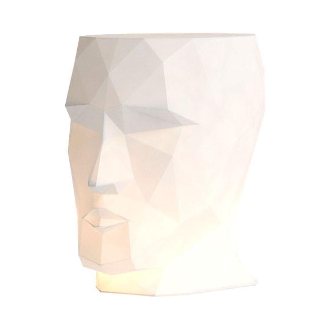 Кашпо выполнено в форме головы со скошенной «теменной» частью. Несмотря на то, что материал изготовления — пластик, создается ощущение, что изделие выполнено из гипса. Такого эффекта удалось добиться благодаря скульптурной технике изготовления с особой огранкой, схожей с обработкой драгоценных камней.