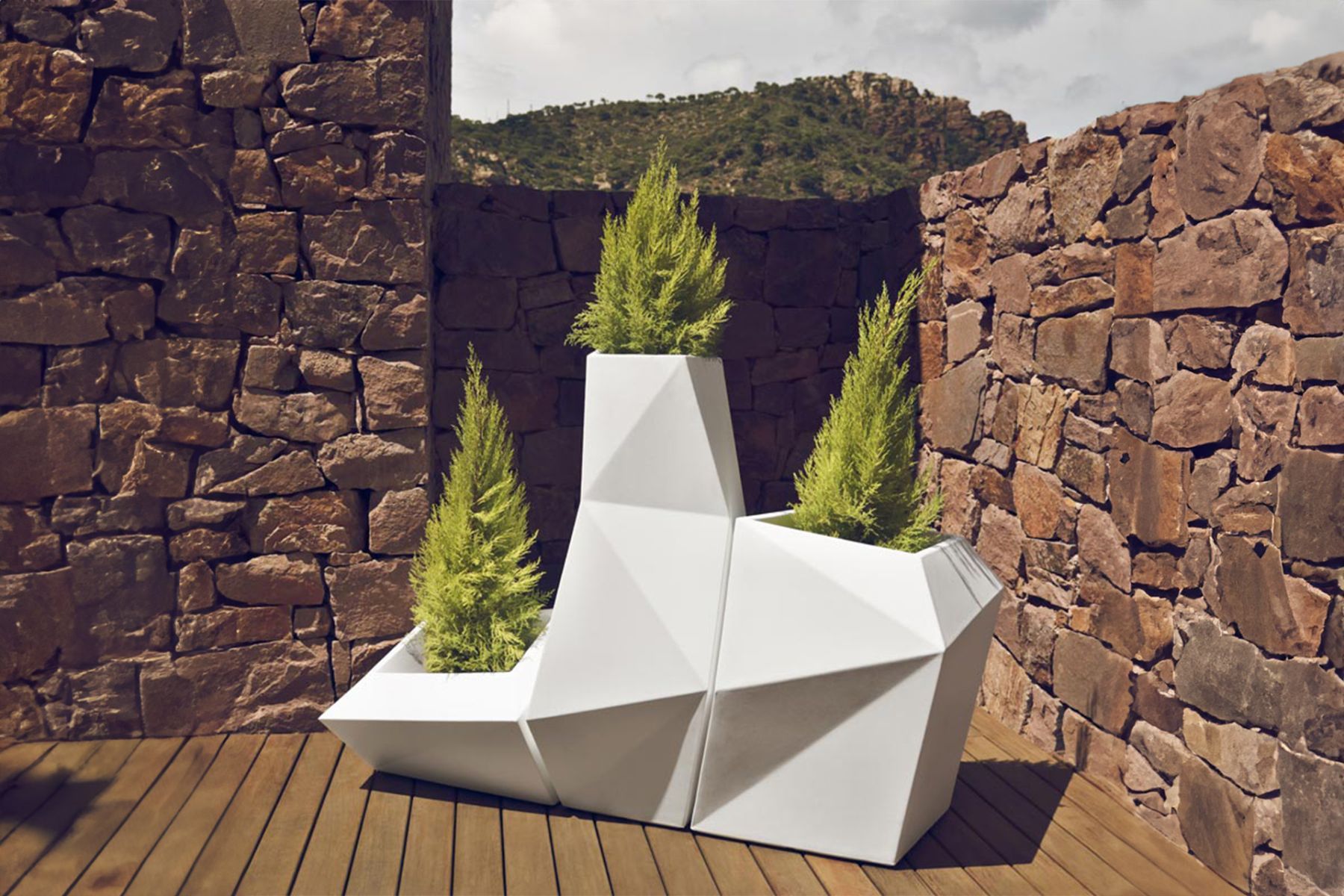 Рамон Эстеве, архитектор гармонии, безмятежности, безвременья и универсальности, создал минеральные и выразительные формы, которые делают FAZ дизайном, который контекстуализируется с домами и инсталляциями. Атмосфера, окружающая в результате Блаженного сочетания материала и освещения, так что единственным ощущением будет его слияние. Их дух VONDOM испытан исключительно в качестве материала, который позволяет использовать экстерьер даже в самых требовательных условиях. Модульность FAZ позволяет потребителям адаптировать мебель и цветочные горшки к своему стилю и потребностям, не теряя гармонии этого мебельного гарнитура. Его обивка доступна в отличном качестве морского холста или полиэфирной ткани. Результатом является продукт, который передает сущность, который содержит сложность и плотность работы, завершенной до крайней степени, целью которой является создание желаемых мест для жизни.