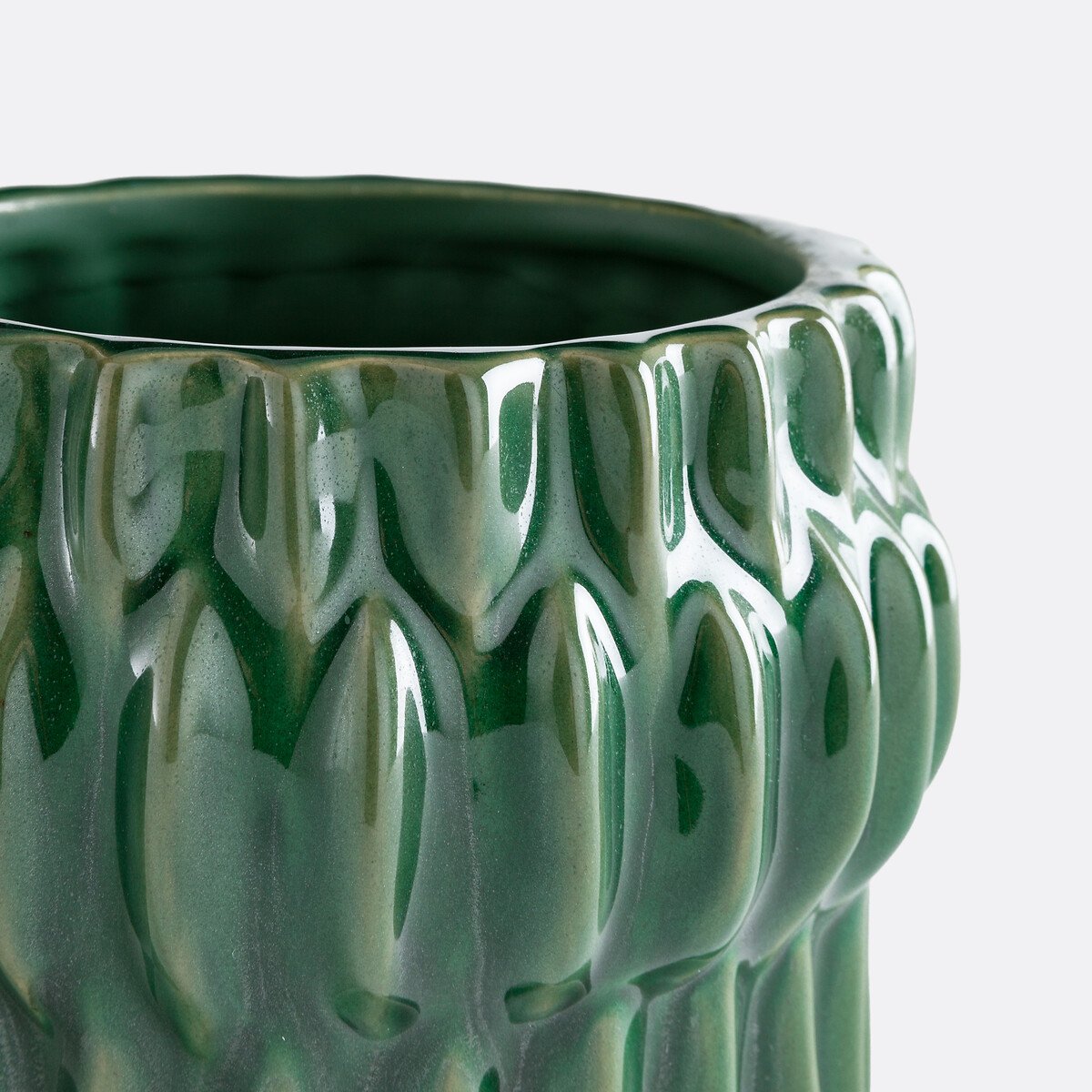 — Серия Kyria / Кирия — это результат производства из керамики, покрытой реактивной глазурью. Так как это покрытие выполнено полностью вручную, каждое изделие уникально и придаст оригинальную нотку вашему декору. Эта техника производства подразумевает применение различных эмалей и оксидов металлов, которые наносятся на глину после первого обжига при низкой температуре. Затем изделия покрываются эмалью другого цвета, которая проявляет оксиды металлов. Цвет и итоговый вид изделия зависят от температуры и времени обжига, толщины слоя глазури и способа ее нанесения.