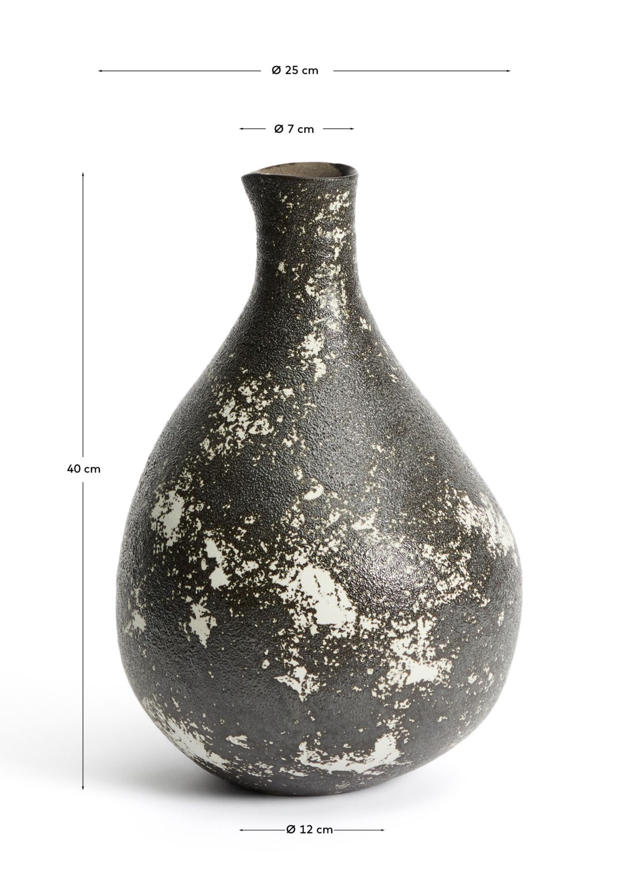 Коллекция Orelin изготавливается вручную, что делает каждое изделие уникальным и неповторимым. Её органичный силуэт с мягкими линиями и просторным основанием привносит гармонию и выразительность в любое пространство. Чёрная глазурь с белыми вкраплениями создаёт элегантный и современный вид с приятной на ощупь текстурой. Благодаря глазурованию каждая ваза демонстрирует едва заметные различия в цвете и текстуре. Универсальное изделие, идеально подходящее как к сухоцветам, так и само по себе.