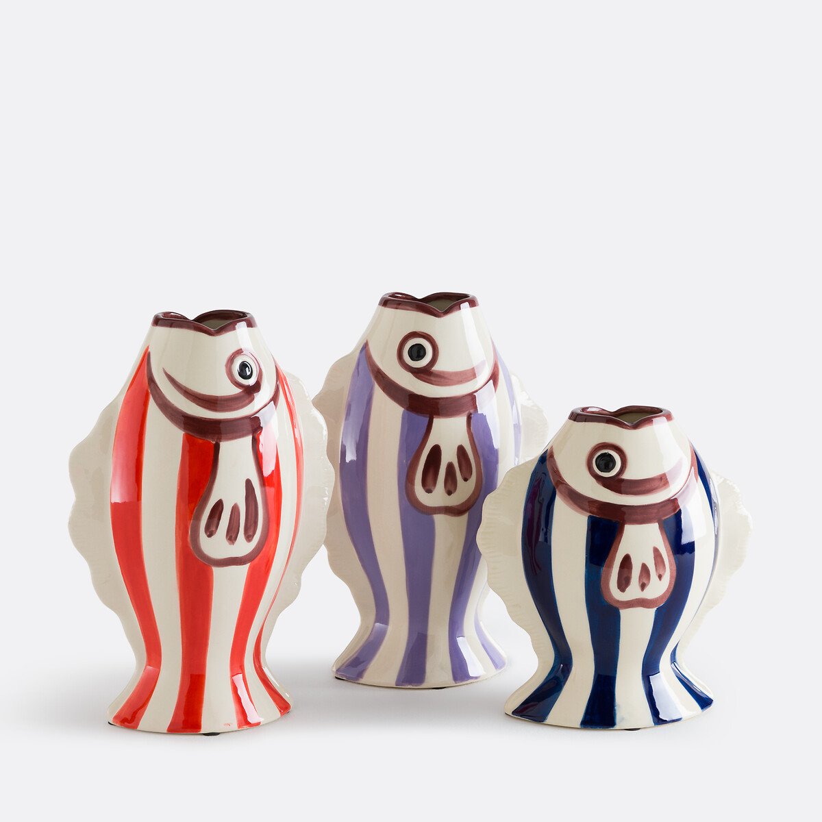 Ваза Fiska / Фиска создает атмосферу полоски. Оригинальная и забавная, она сделана вручную из расписной керамики. Она имеет форму рыбы, готовой принять ваши самые красивые букеты живых цветов.Выпускаются в двух вариантах высоты и трех разных цветах, поэтому их можно с удовольствием разбросать по комнате или собрать в одну группу, как косяк рыб. Для создания яркого, стильного интерьера.Описание — Форма рыбы — Выполнена из окрашенной керамики — Ручная работа, каждое изделие уникально: цвета и размеры могут незначительно отличаться — Поставляется в специальной упаковке, исключающей риск повреждений.Размеры — Диаметр: 22,5 см — Высота: 24 смРазмеры и вес упаковкиОдна упаковка — Ш29 x В19 x Д29,5 см, 1,61 кг