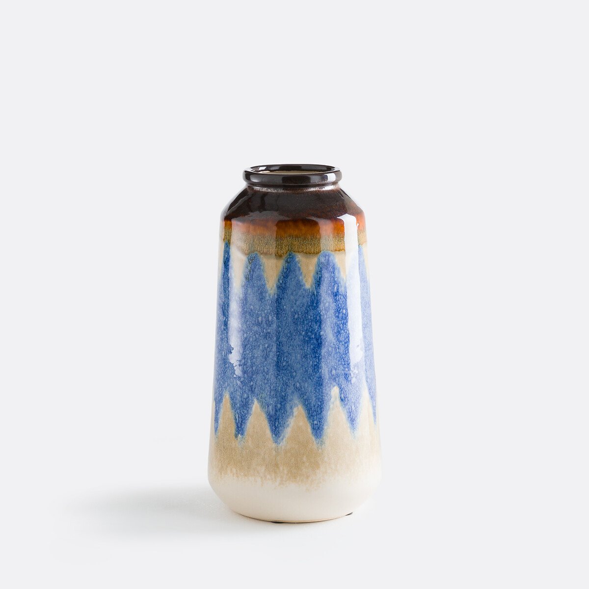 Направление на юг. Ваза Zia / Зиа вдохновлена средиземноморским мастерством : цветовые градации и ромбовидные узоры, напоминающие традиционную испанскую плитку, керамика и реактивная глазурь. Он придает вашему дому теплую атмосферу.Ваза или предмет декора, играйте с ней в одиночку или сочетайте с другими вазами из этой серии, разных размеров и цветов.Описание — Из глазурованной керамики с отражающим эффектом — Разноцветные ромбовидные узоры — Ручная работа, каждое изделие уникально: цвета и размеры могут незначительно отличаться — Поставляется в специальной упаковке, исключающей риск повреждений.Качество — Серия Zia изготовлена из реактивного глазурованного керамогранита. Так как это покрытие выполнено полностью вручную, каждое изделие уникально и придаст оригинальную нотку вашему декору. Эта техника производства подразумевает применение различных эмалей и оксидов металлов,: они наносятся на глину после первого обжига при низкой температуре. Затем изделия покрываются эмалью другого цвета, которая проявляет оксиды металлов. Цвет и итоговый вид изделия зависят от температуры и времени обжига, толщины слоя глазури и способа ее нанесения.Размеры — Диаметр: 15 см — Высота: 29 см — Отверстие: 6,5 смРазмеры и вес упаковкиОдна упаковка — Ш20,5 x В36,5 x Д19,5 см, 1,84 кг