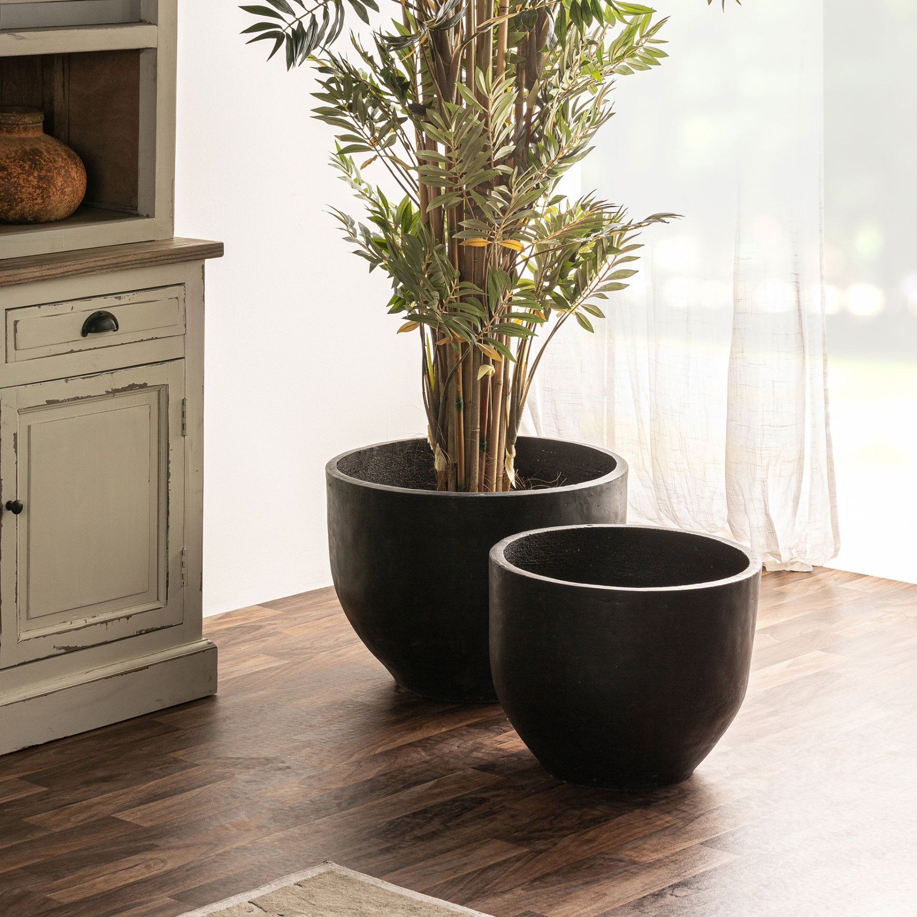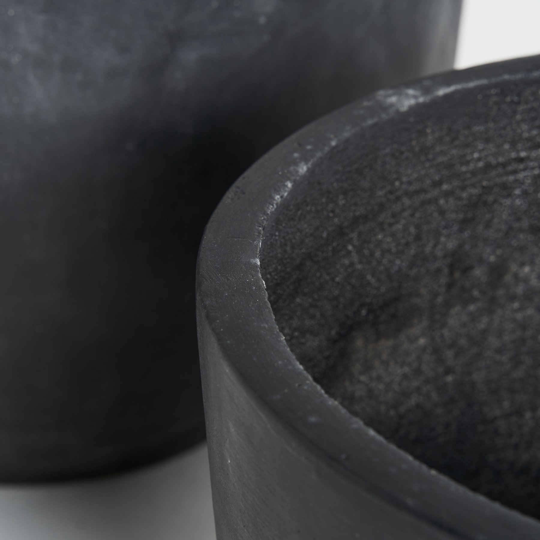 Набор из 2 кашпо, черного цвета, современный стиль. Изготовлен из терракоты.