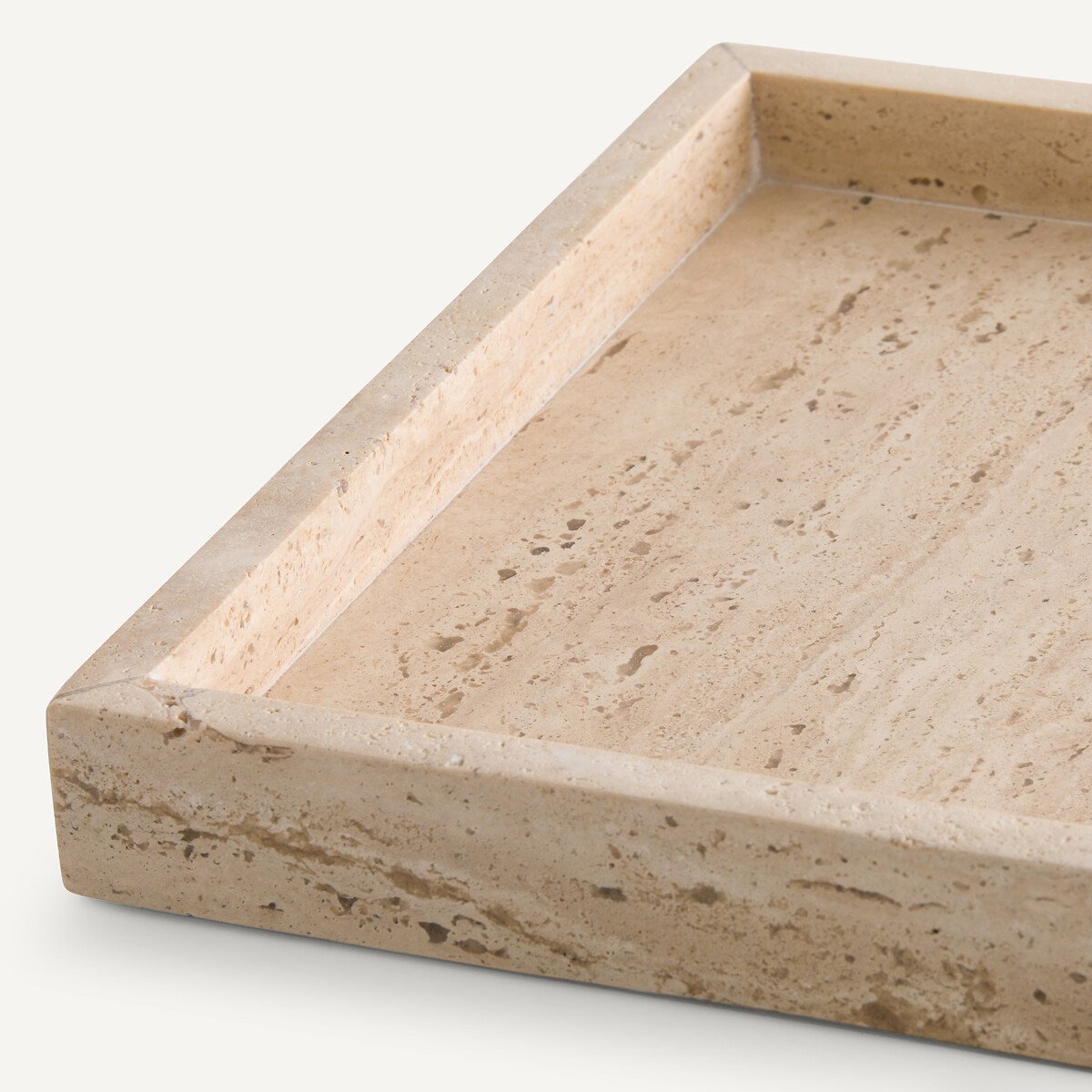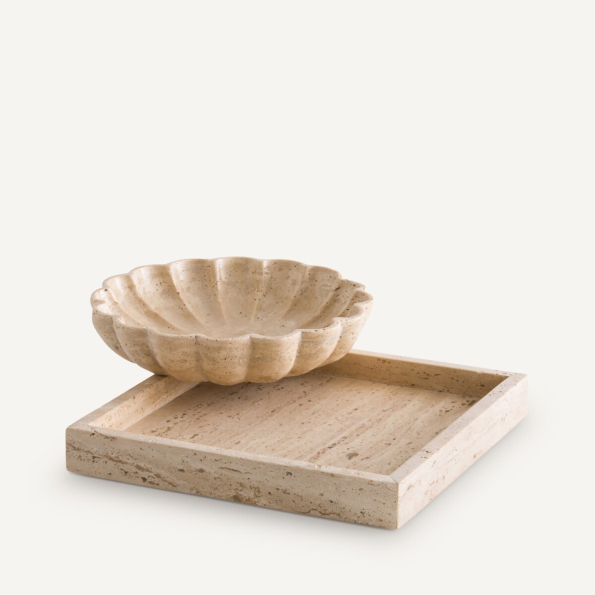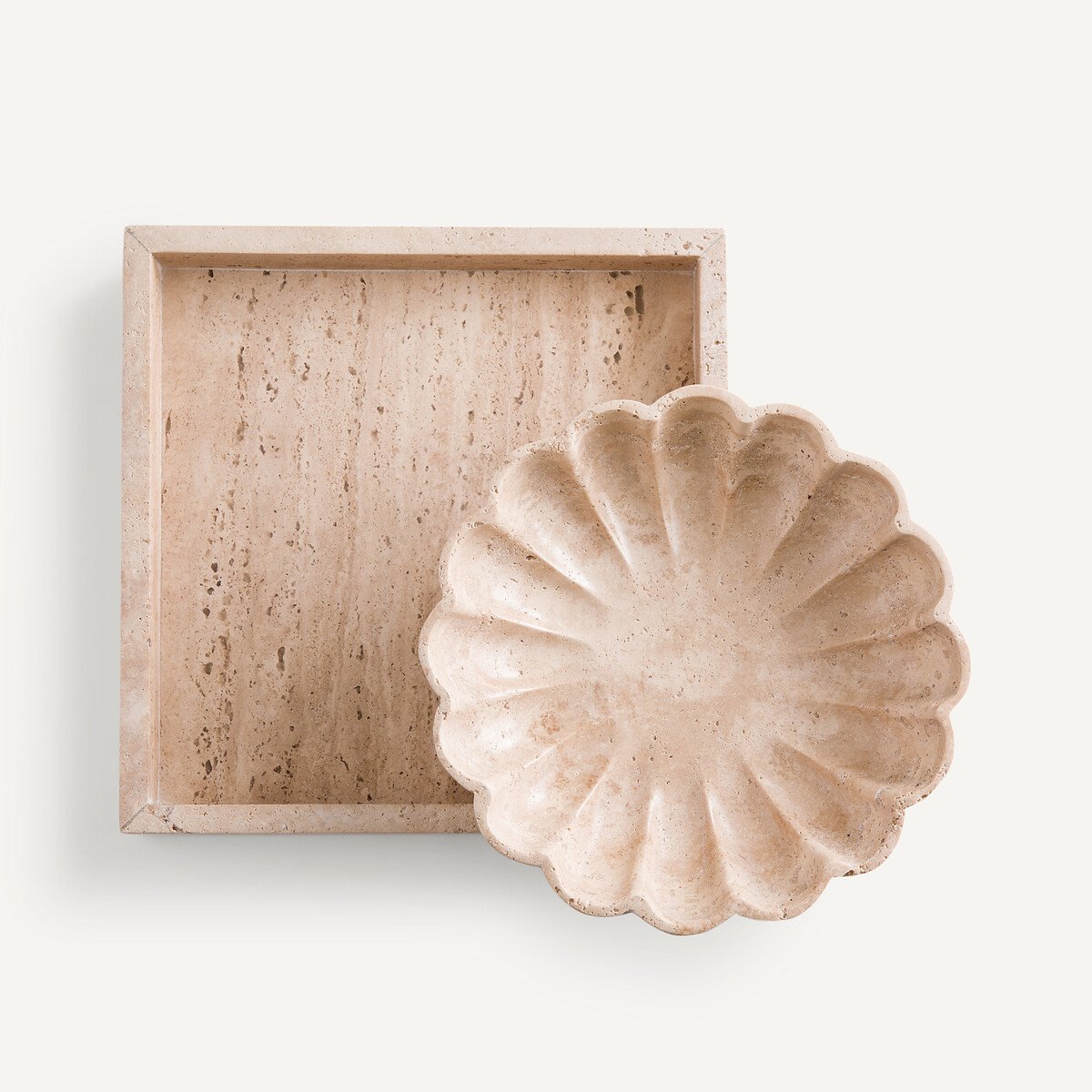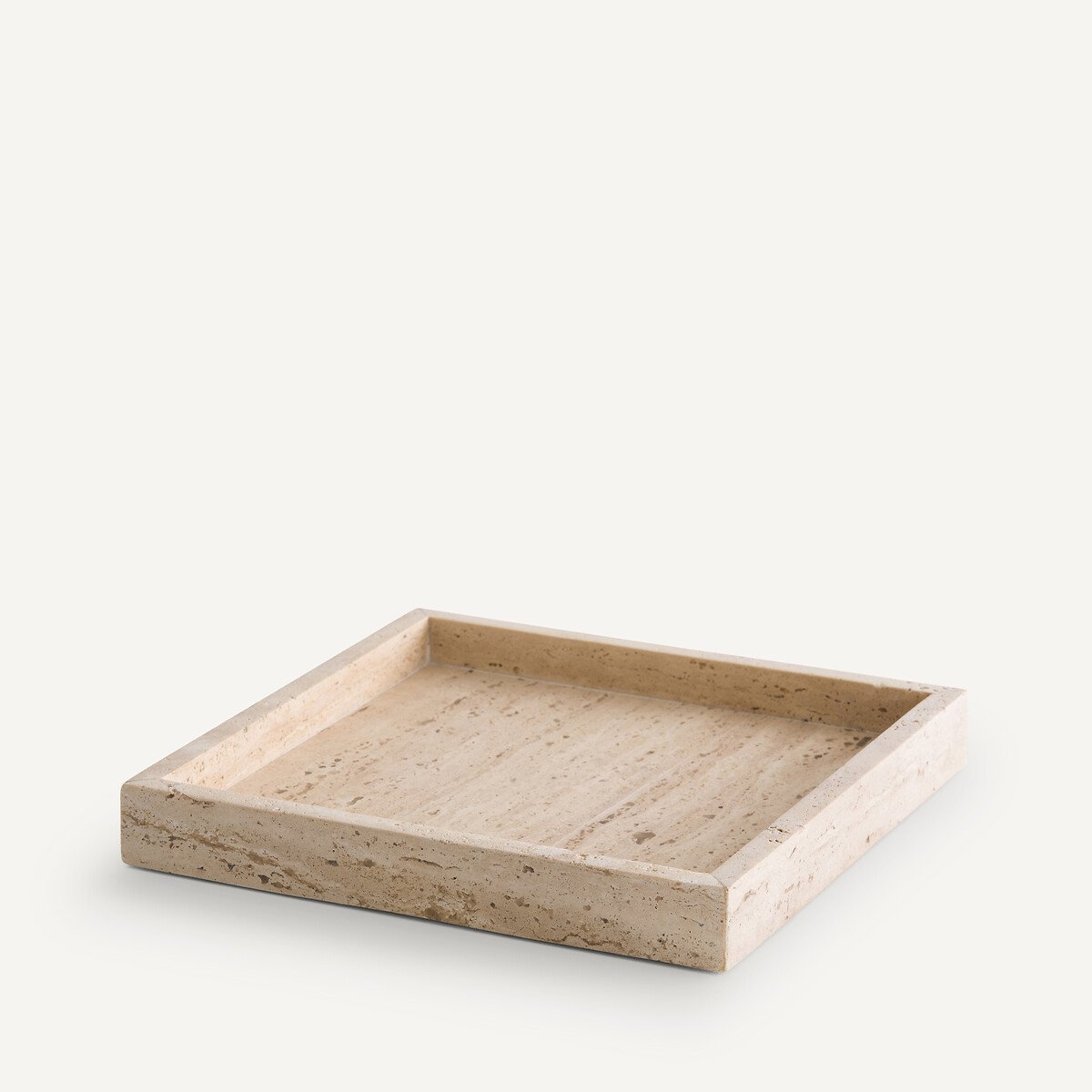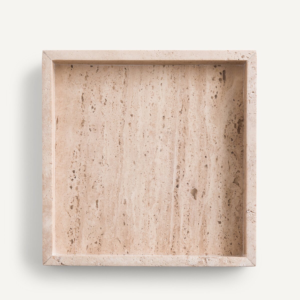 Строгий, элегантный, аутентичный. Его изысканная форма с прямыми и четкими линиями придает ему очевидный современный характер. Камень травертин, гладкий, теплый и шероховатый, очень красивый и практичный.Для ключей и мелких предметов, а также отдельно — в качестве предмета декора.Описание • Из травертинаКачество • Прожилки и шероховатости травертина могут быть более или менее выраженными, каждое изделие уникальноРазмеры • Длина: 30 см • Ширина: 30 см • Высота: 4 смРазмеры и вес упаковкиОдна упаковка • Д41 x В14 x Г39 см, 4,7 кг