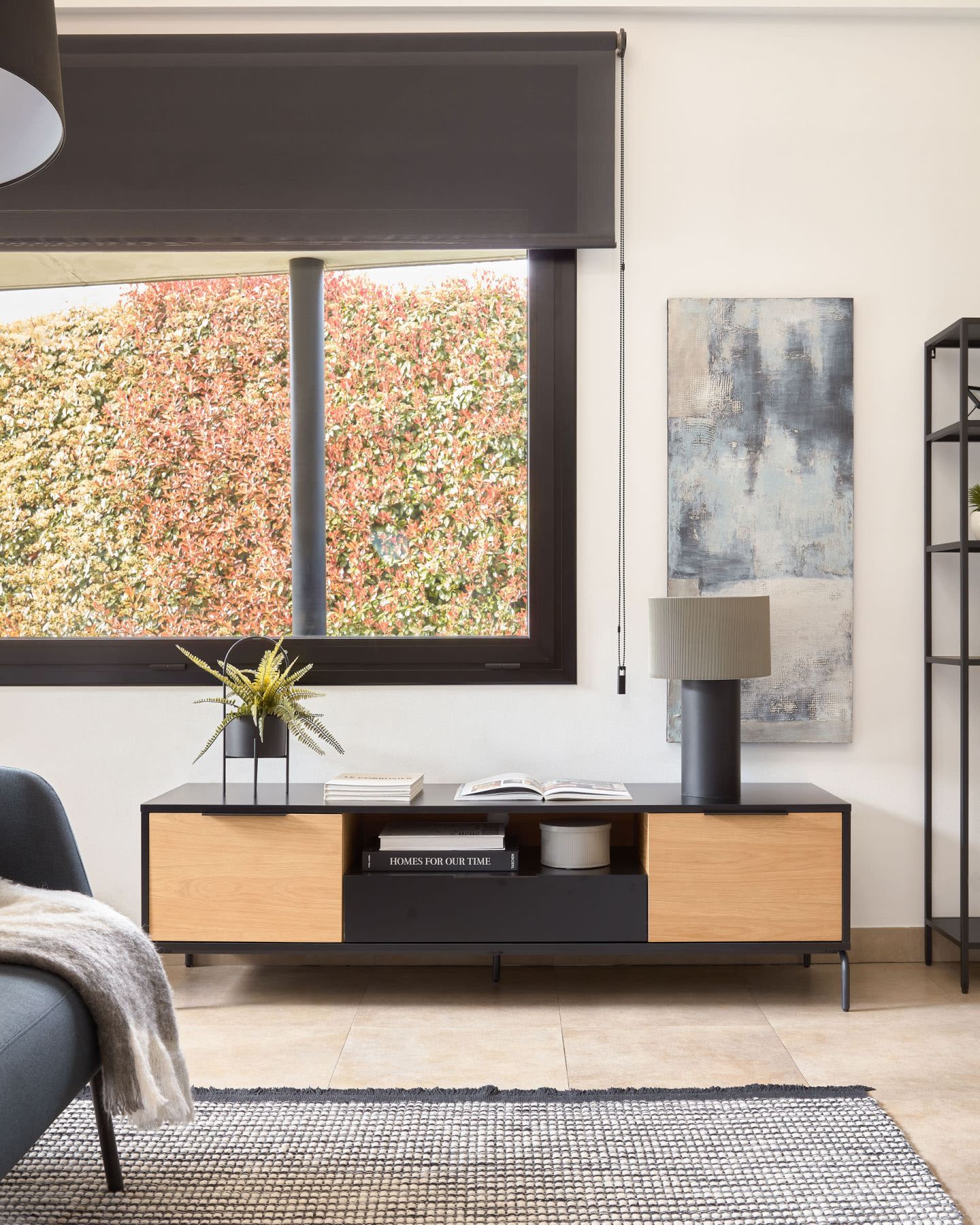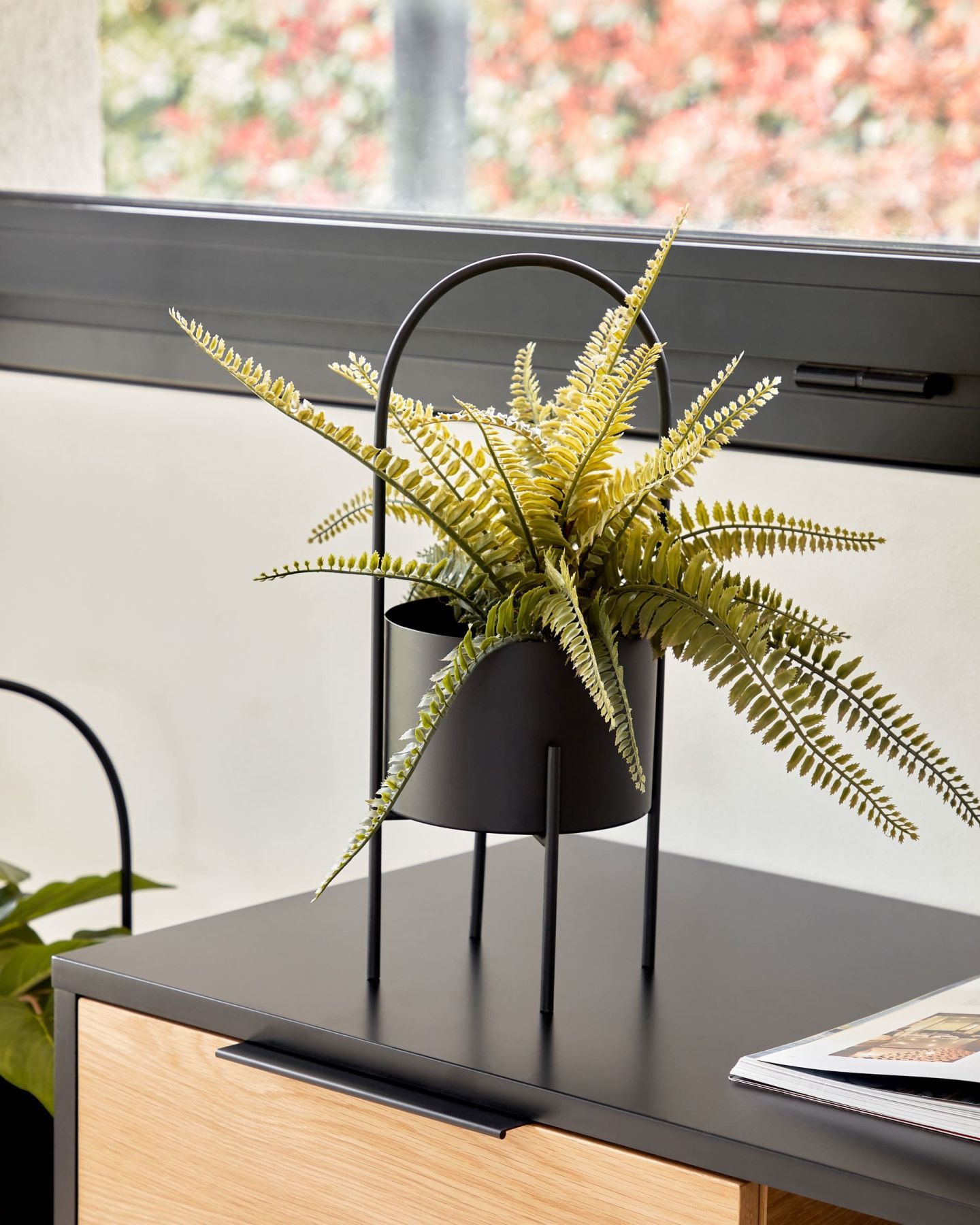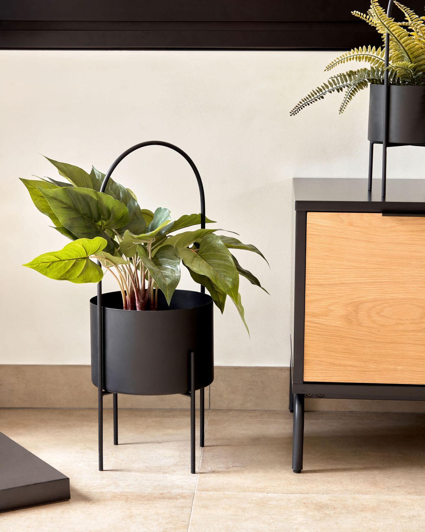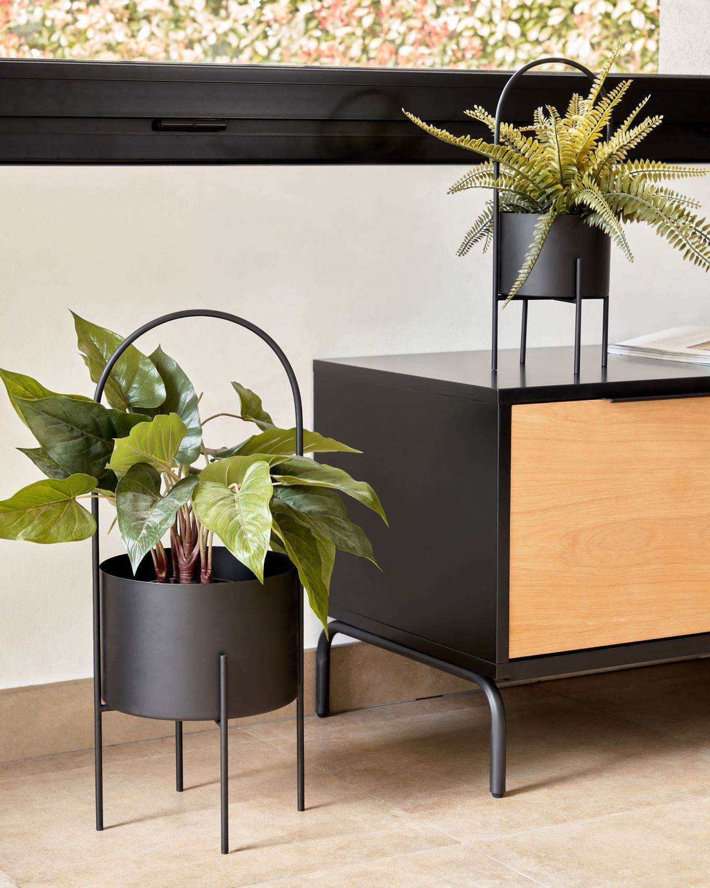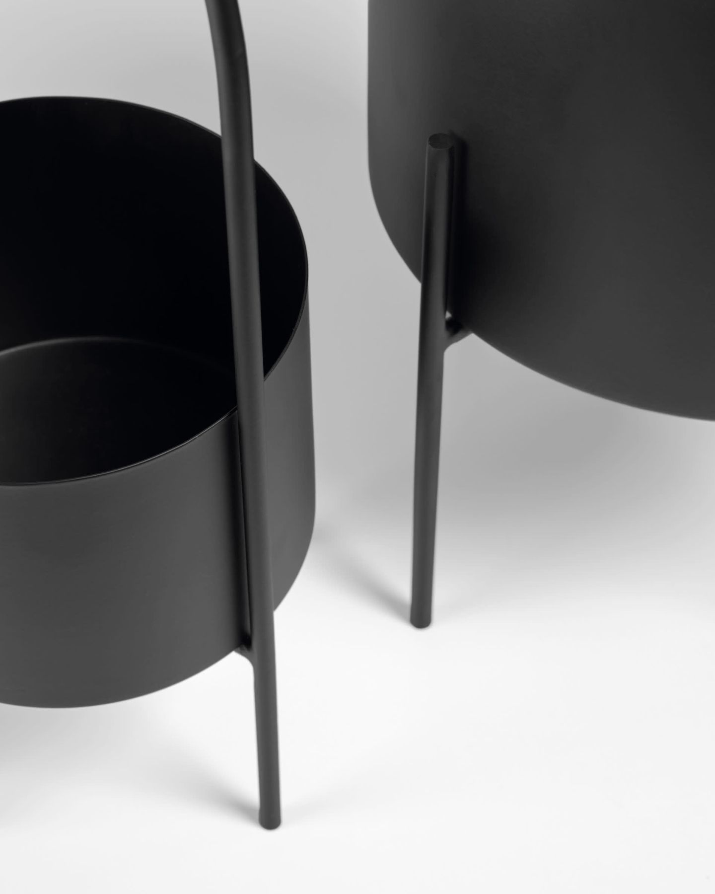 Набор из двух стальных кашпо разных размеров с черным покрытием.