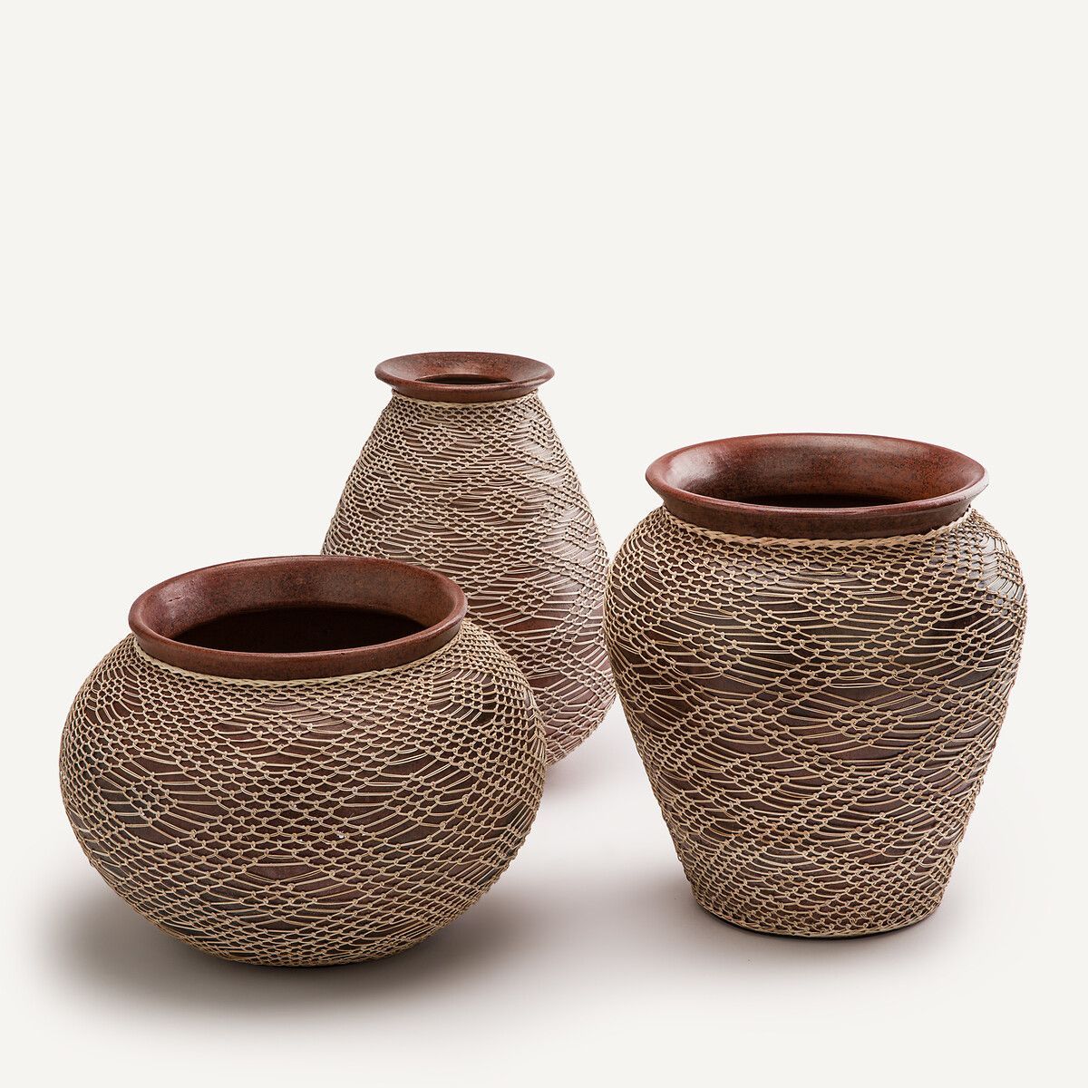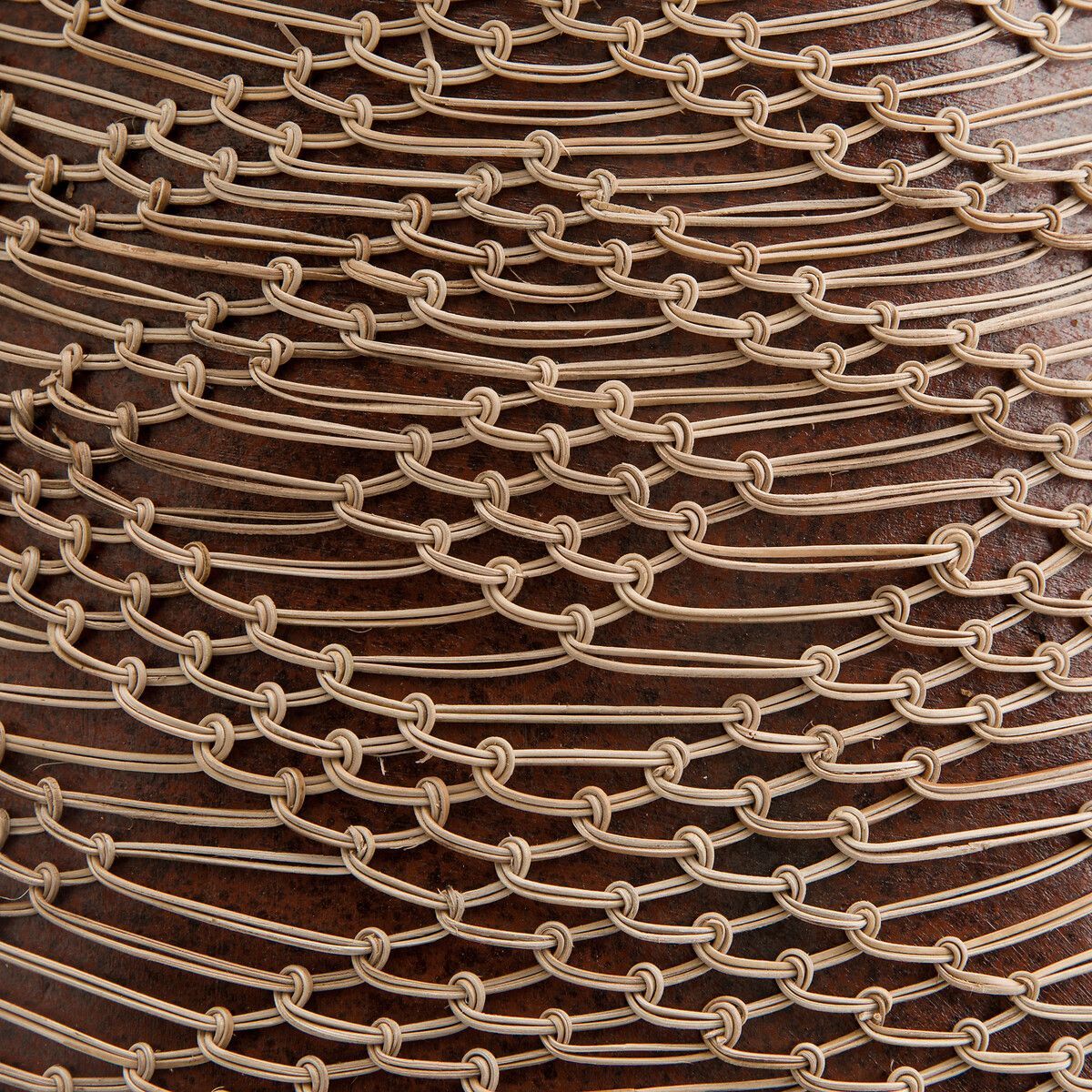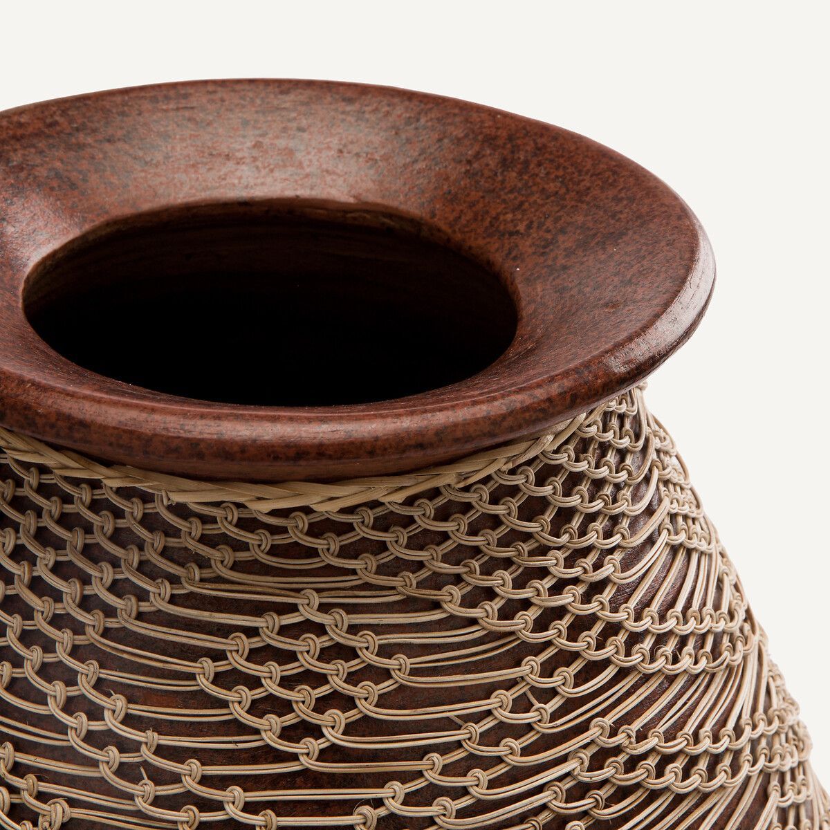 Терракотовая ваза Mavazi ручной работы с тонким ротанговым плетением была вдохновлена традиционной африканской керамикой. Изогнутый силуэт и неправильная форма делают ее уникальным предметом декора.