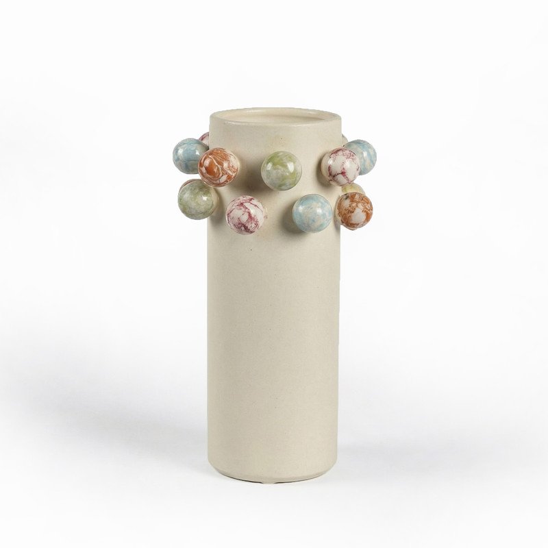 Лаконичная керамическая ваза, с выступающими декоративными деталями, отлично впишется в современный интерьер.