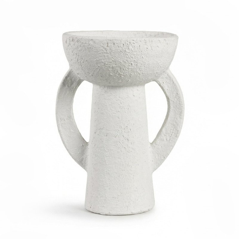 Керамическая белая ваза, выполнена в современном стиле. Благодаря своей необычной форме, ваза отлично дополнит современный интерьер, украсив его.