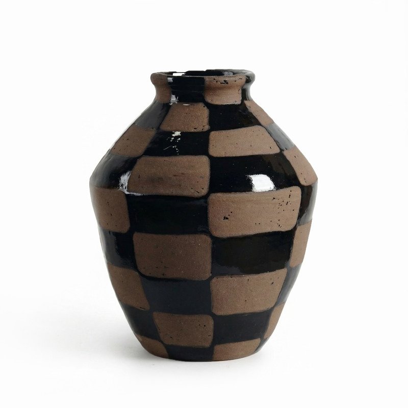 Лаконичная керамическая ваза с шахматным узором, отлично дополнит в любой в интерьер.