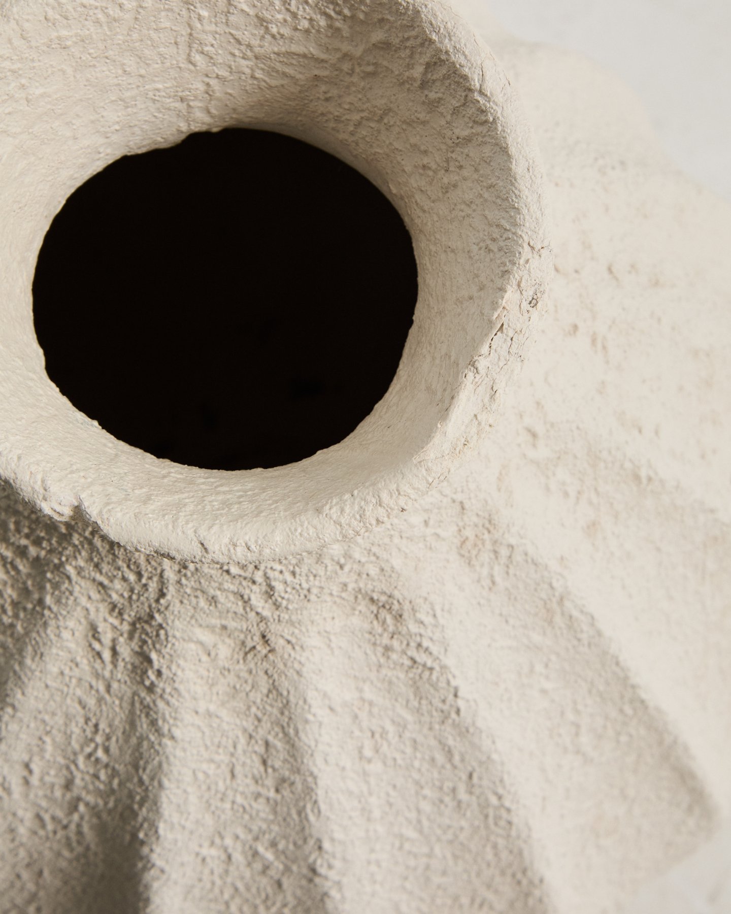 оллекция Arquena включает в себя вазы ручной работы из папье-маше, изготовленные из переработанной газетной бумаги. Изделия отличаются мягкой текстурой и четко очерченными объемами, с небольшими вариациями, благодаря которым нет двух одинаковых. Форма с вертикальными рельефами добавляет объем и характер, создавая декоративные предметы со спокойной эстетикой, которые гармонично вписываются в различные интерьеры.