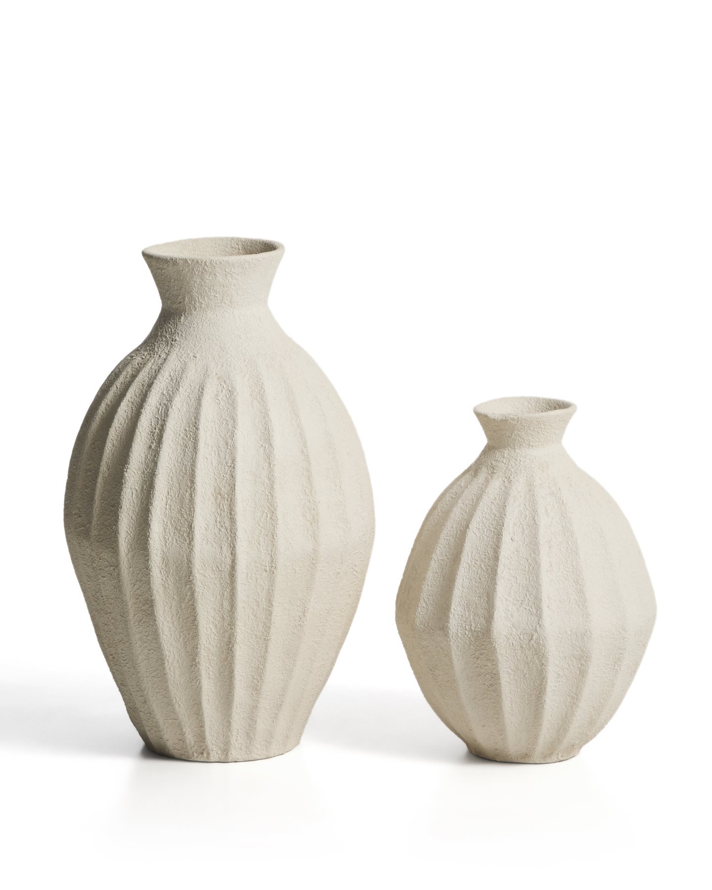 Коллекция Arquena включает в себя вазы ручной работы из папье-маше, изготовленные из переработанной газетной бумаги. Изделия отличаются мягкой текстурой и четко очерченными объемами, с небольшими вариациями, благодаря которым нет двух одинаковых. Форма с вертикальными рельефами добавляет объем и характер, создавая декоративные предметы со спокойной эстетикой, которые гармонично вписываются в различные интерьеры.