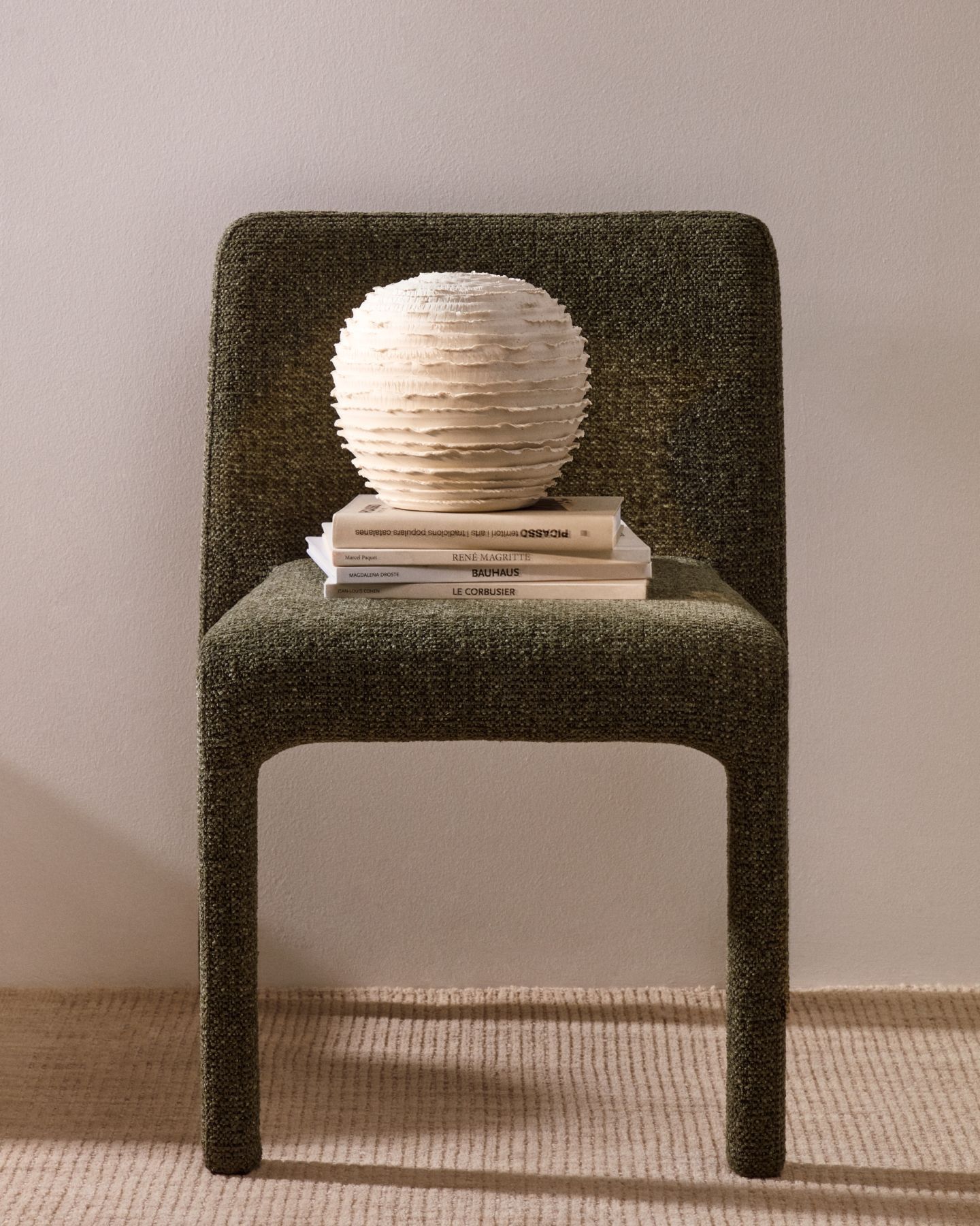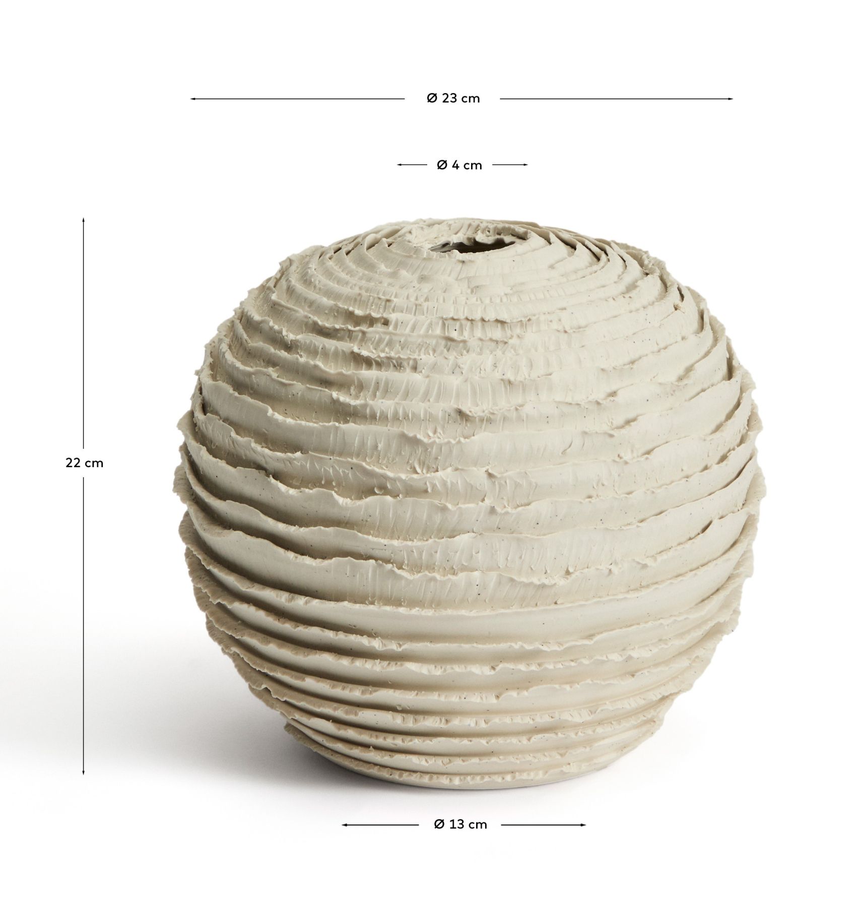 Коллекция Evania изготавливается вручную на гончарном круге, что придает каждому предмету индивидуальность и делает его поистине уникальным. Поверхность украшена изящными горизонтальными бороздками, огибая вазу, создавая тонкую игру теней и текстур, которая добавляет ей аутентичности и очарования. Её округлые, органичные формы создают атмосферу спокойствия и визуального равновесия в любом интерьере. Эта ваза – как самостоятельный предмет интерьера, так и для хранения сухих цветов – станет универсальным и вневременным декоративным элементом.