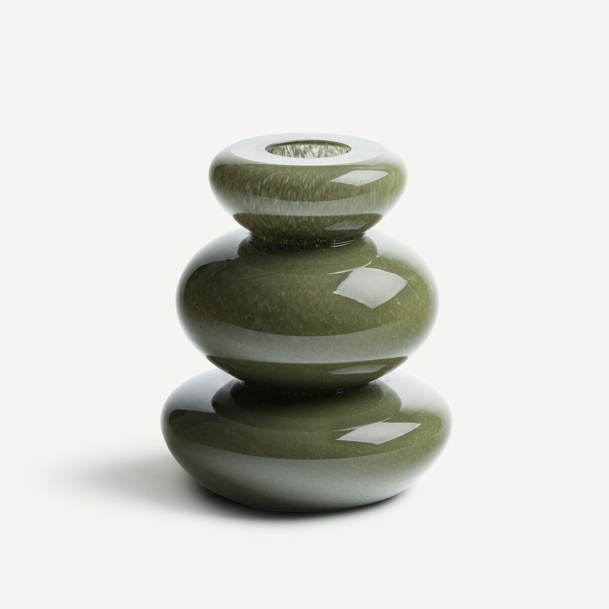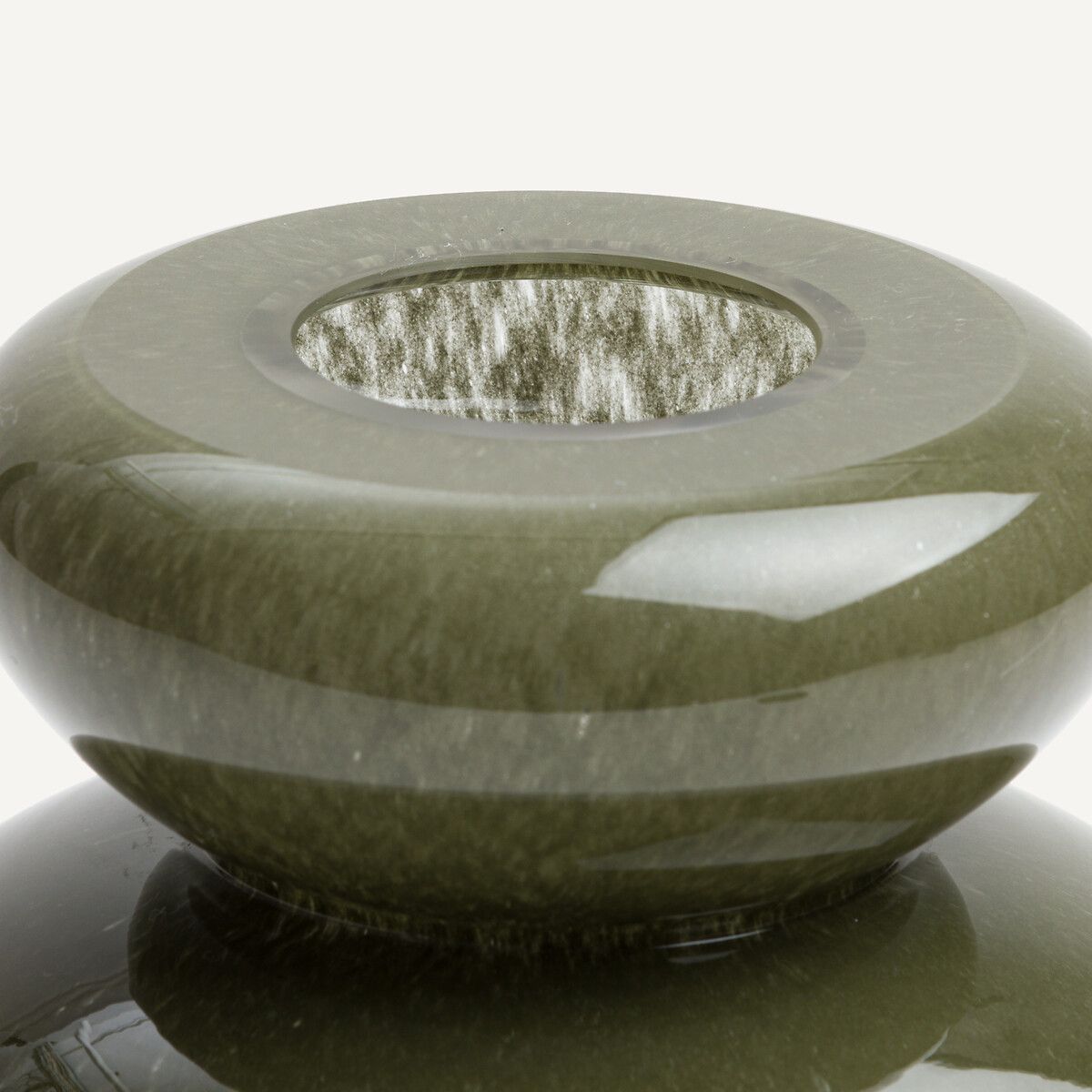 Эта ваза из дутого стекла в виде шара играет тонкими оттенками цвета, полученными при окрашивании в массе. Ее изысканный и воздушный дизайн выражает приятную и незамысловатую элегантность.
