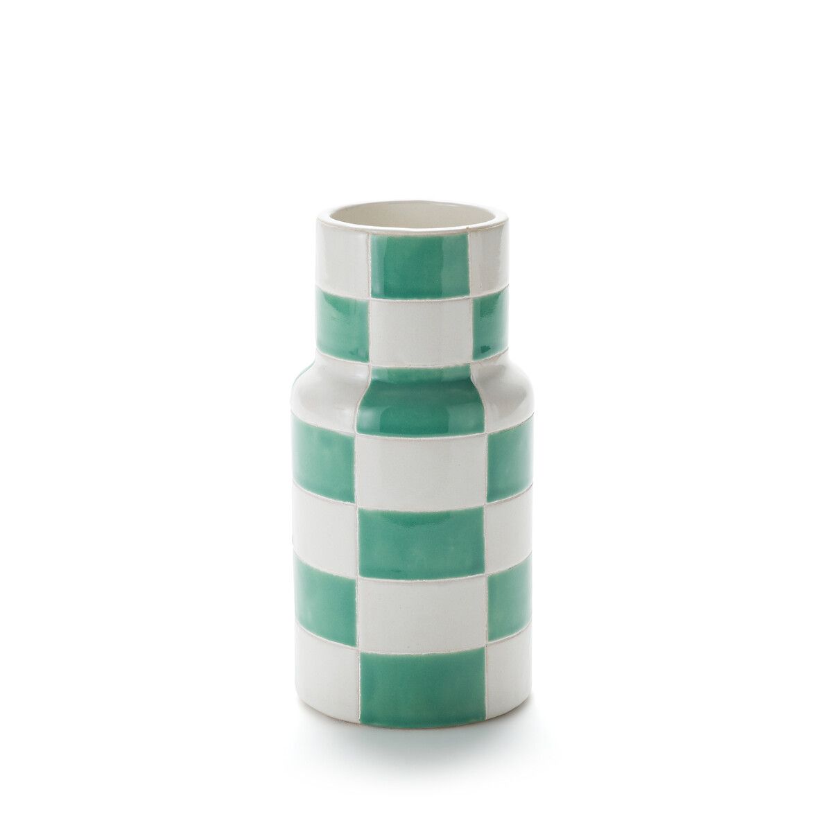 Ваза из керамики Skemo с шахматным принтом бирюзового цвета в современном дизайне украсит ваш декор свежей ноткой. Дизайн La Redoute Intérieurs.