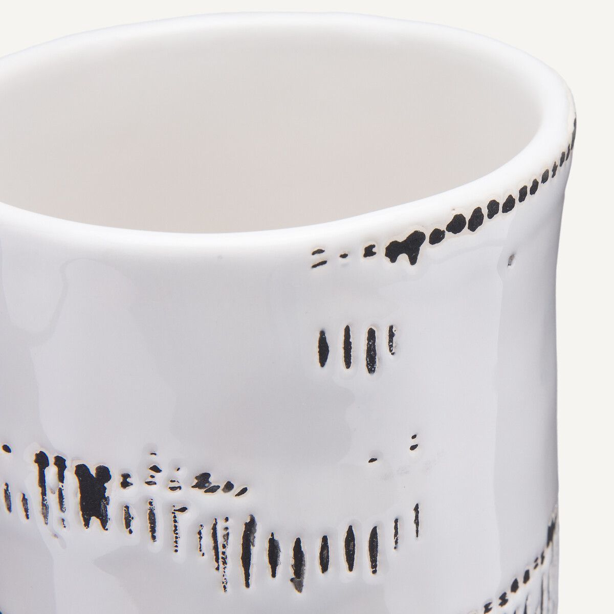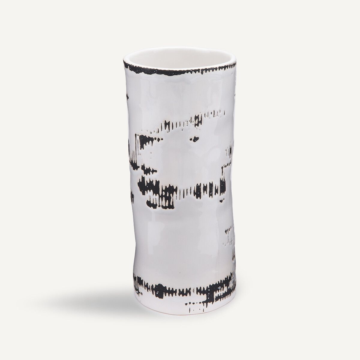 Из керамики. Белая блестящая глазурь наносится на поверхность вазы из черной матовой керамики.