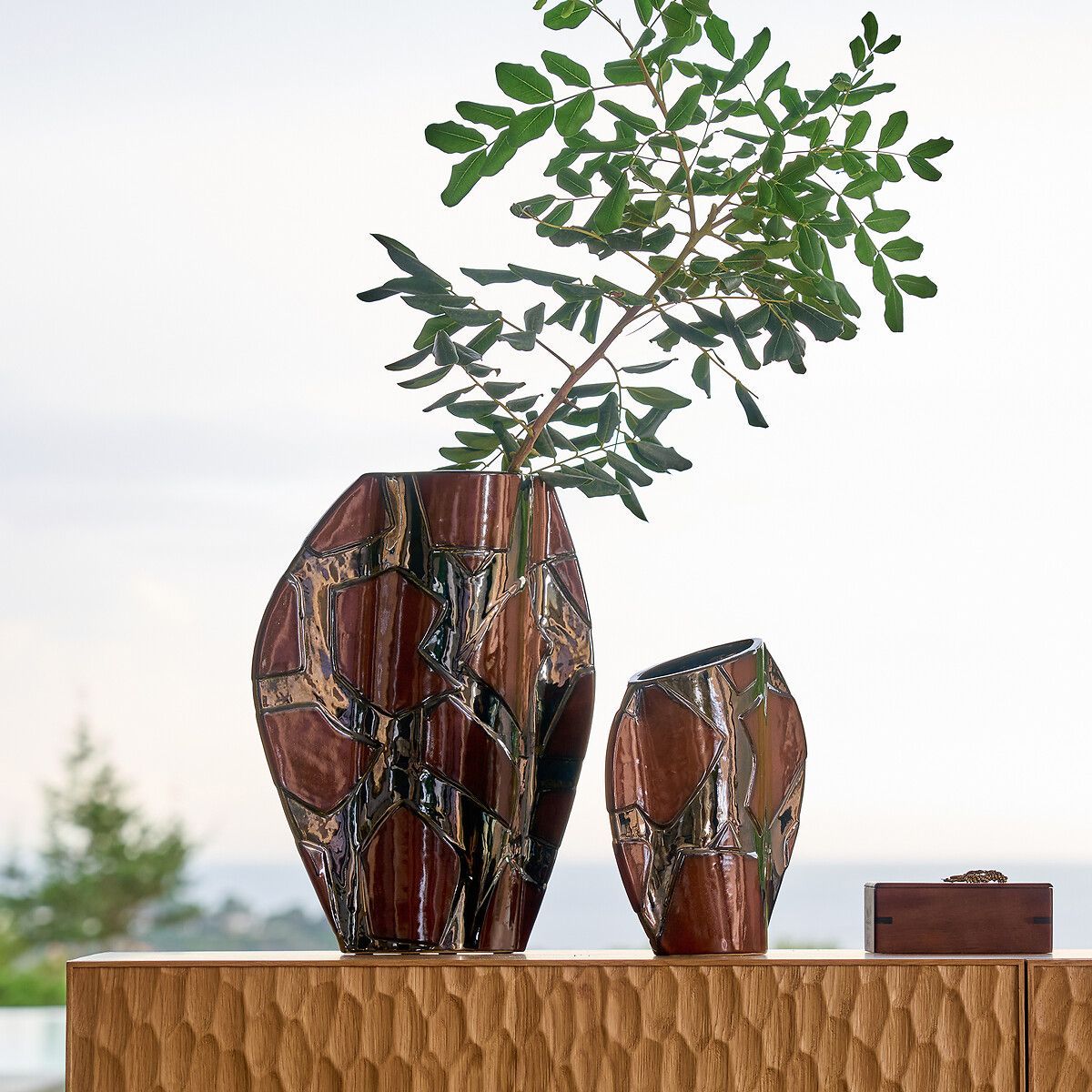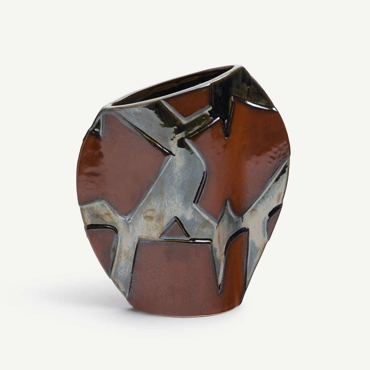 Под любым углом эта ваза проявляет свою оригинальность. Необычная форма, созданная сплошными линиями ее дизайна, выгодно подчеркнута глазурованной керамикой с металлическим отливом, нанесенной вручную.Ремесленная техника, которая заставляет играть цвета — от самого глубокого коричневого до самого яркого серебристого.Описание — Глазурованная керамика, металлическая эмаль, нанесенная вручную — Ручная работа, каждое изделие уникально. Форма, цвет и размеры изделия могут незначительно отличатьсяУходКерамика — это материал, устойчивый к ударам, царапинам и пятнам. Протирайте ее влажной губкойРазмеры — Ширина: 23 см — Высота: 26 см — Глубина: 8 смРазмеры и вес упаковки — Одна упаковка — Д32 x В35 x Г17 см, 1,9 кг
